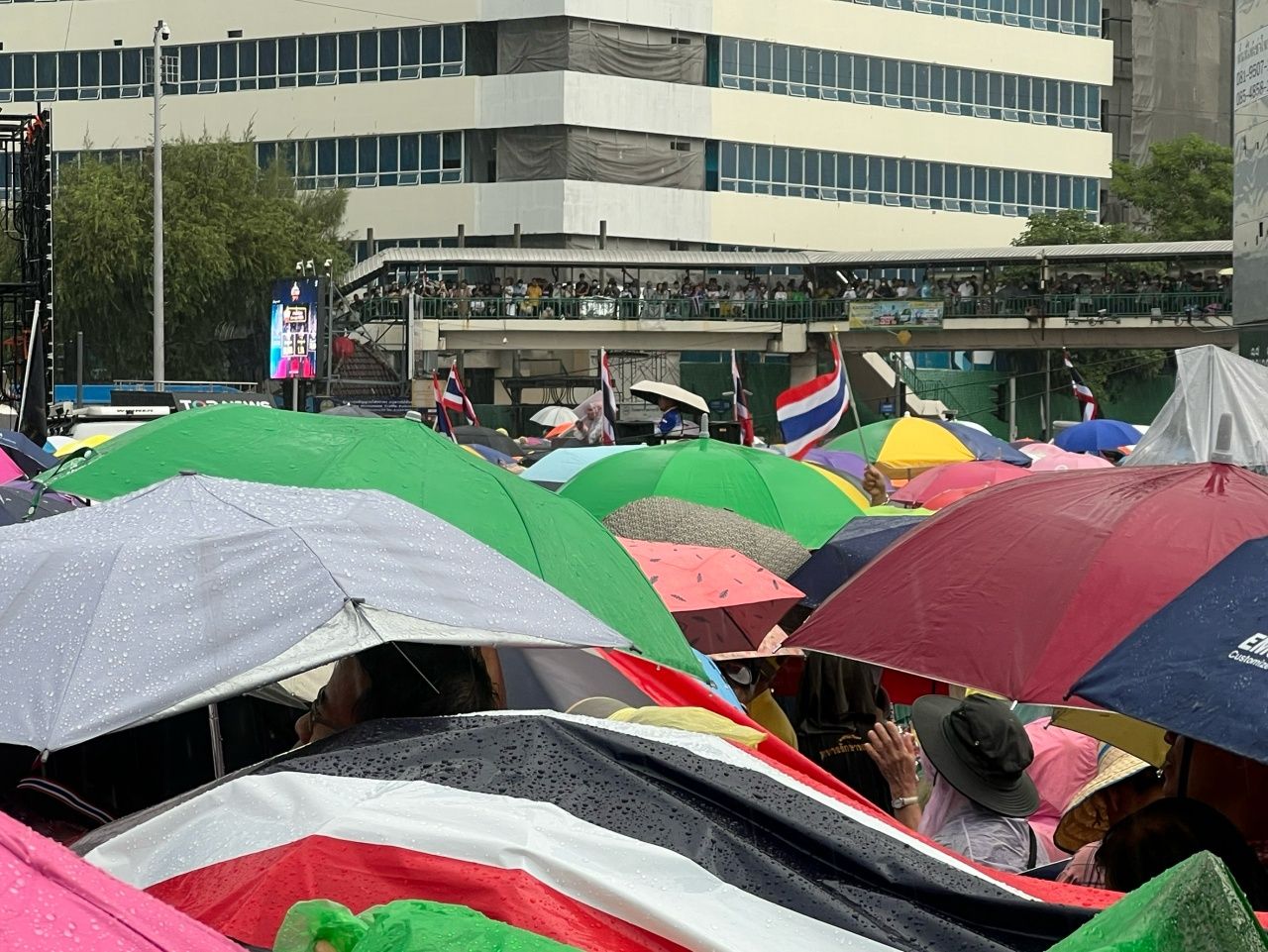 มวลชนไม่ท้อหลังฝนตกหนัก กางร่มฟังปราศรัย