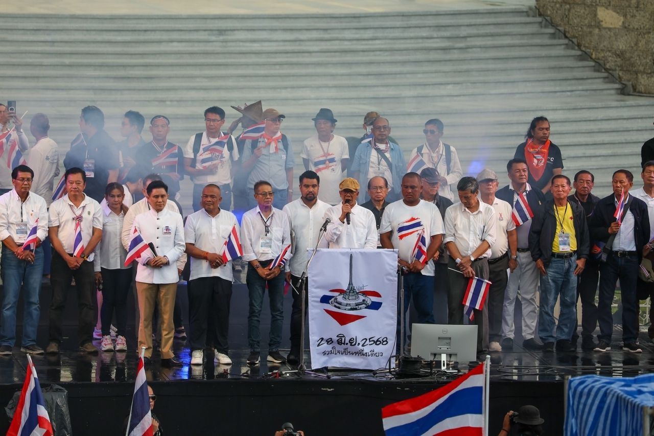 ที่อนุสาวรีย์ชัยสมรภูมิ วันที่ 28 มิถุนายน 68 ผู้สื่อข่าวรายงานบรรยากาศการชุมนุมของกลุ่มรวมพลังแผ่นดินปกป้องอธิปไตย เมื่อเวลา 18.00 น. หลังจากที่แกนนำขึ้นเวทีปราศรัย ร่วมร้องเพลงชาติกับกลุ่มมวลชนแล้ว