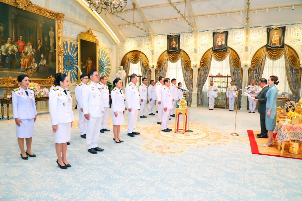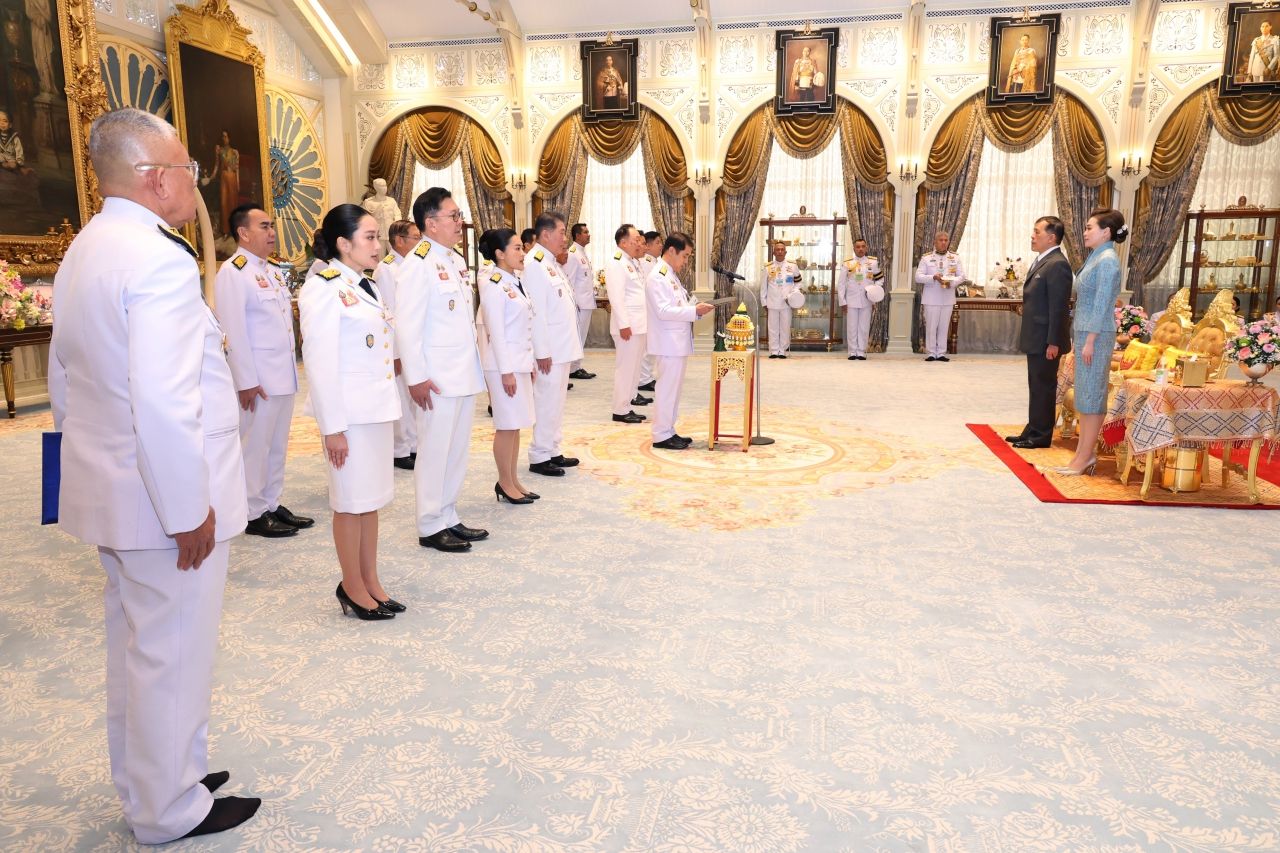 พระบาทสมเด็จพระเจ้าอยู่หัว และสมเด็จพระนางเจ้า ฯ พระบรมราชินี พระราชทานพระบรมราชวโรกาสให้คณะรัฐมนตรีชุดใหม่เฝ้าทูลละอองธุลีพระบาท ถวายสัตย์ปฏิญาณก่อนเข้ารับหน้าที่