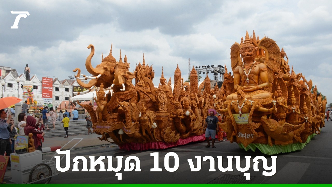 สำหรับ 10 จังหวัด 10 ประเพณีงานบุญที่จัดอย่างยิ่งใหญ่ในช่วงวันอาสาฬหบูชาและเข้าพรรษา ได้แก่ 1. งานแห่เทียนพรรษาพระราชทาน จังหวัดนครพนม 2. งานแห่เทียนพรรษาโคราช จังหวัดนครราชสีมา 3. งานแห่เทียนพรรษาประโคนชัย จังหวัดบุรีรัมย์ 4. งานแห่เทียนพรรษาทางน้ำลาดชะโด จังหวัดพระนครศรีอยุธยา 5. งานเวียนเทียนทางน้ำกลางกว๊านพะเยา จังหวัดพะเยา 6. งานตักบาตรดอกเข้าพรรษา วัดพระพุทธบาท จังหวัดสระบุรี 7. งานประเพณียายดอกไม้ (ตักบาตรดอกไม้) วัดจินดามณี จังหวัดสิงห์บุรี 8. งานแห่เทียนพรรษา 10 อำเภอ จังหวัดสุพรรณบุรี 9. งานแห่เทียนและตักบาตรบนหลังช้าง จังหวัดสุรินทร์ และ 10. งานแห่เทียนพรรษา “ศรีศิลป์ ถิ่นไทยดี” จังหวัดอุบลราชธานี