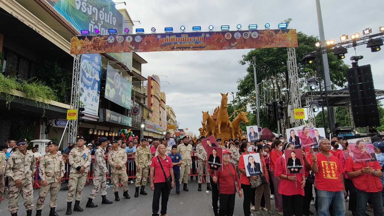 จัดพิธีเปิดงานประเพณีแห่เทียนพรรษา ประจำปี 2568 “แห่เทียนโคราช ศาสตร์ศิลป์ถิ่นย่าโม” มี นางสาวแพทองธาร ชินวัตร รัฐมนตรีว่าการกระทรวงวัฒนธรรม เป็นประธานในพิธี ก่อนพิธีเปิดงานจะเริ่มขึ้น กลุ่มรักชาติชาวนครราชสีมาจำนวนหนึ่งโบกธงชาติแสดงสัญลักษณ์ พร้อมตะโกนขับไล่ นางสาวแพทองธาร ให้ลาออกจากนายกรัฐมนตรี