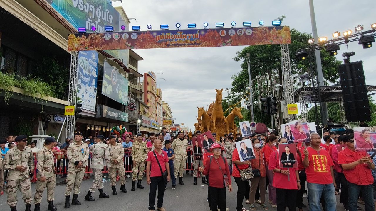 ม็อบโคราชเดือด ขับไล่ “นายกฯ อิ๊งค์” เซ่นปมคลิปเสียงคุย “ฮุน เซน” ระหว่างลงพื้นที่งานประเพณีแห่เทียนพรรษา ประจำปี 2568 ปะทะกับมวลชนคนเสื้อแดงโคราช ที่มาชูป้ายให้กำลังใจ