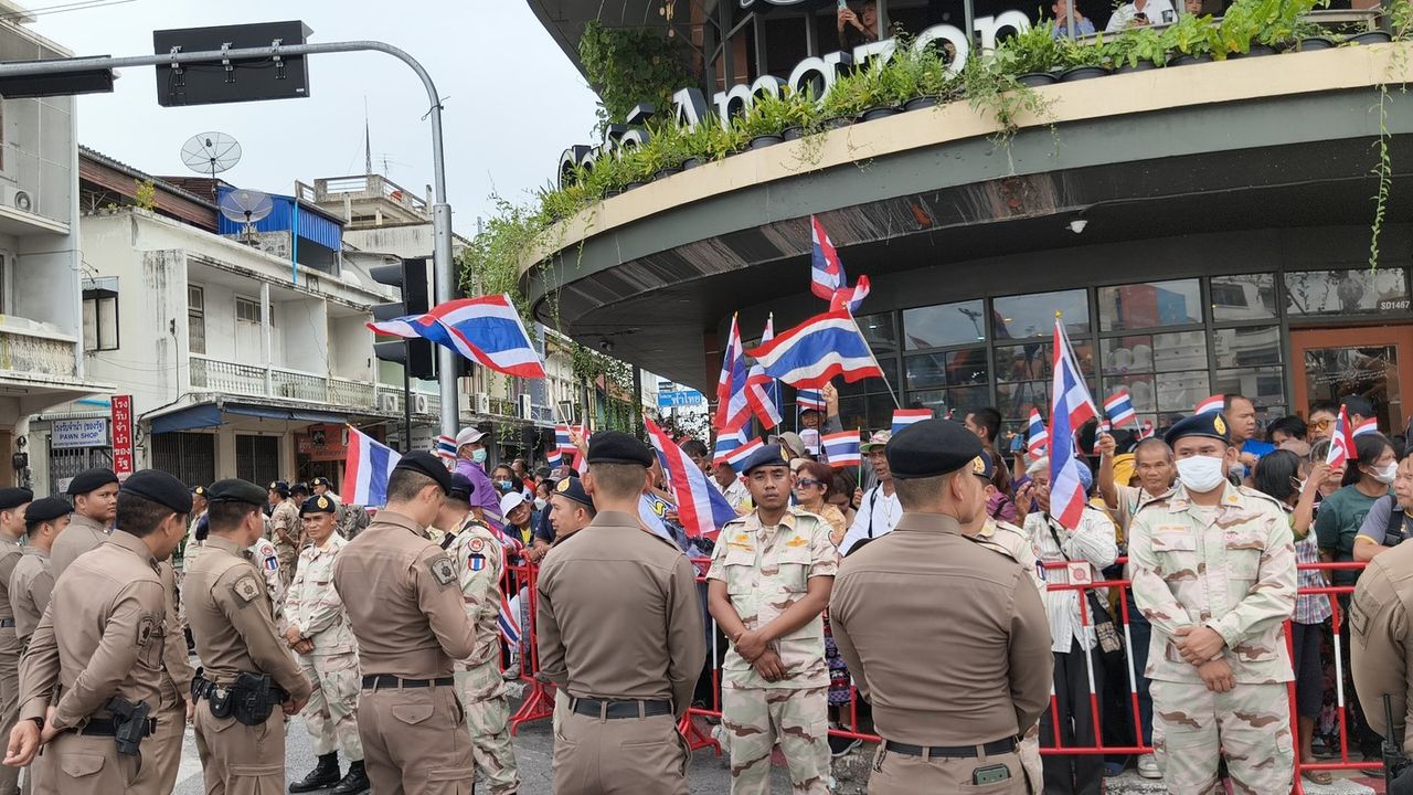 ทั้งนี้พบว่ามวลชนทั้งสองกลุ่ม ได้ตะโกนโห่ร้องกันไปมา ท่ามกลางการดูแลความปลอดภัยของเจ้าหน้าที่อย่างเข้มงวด