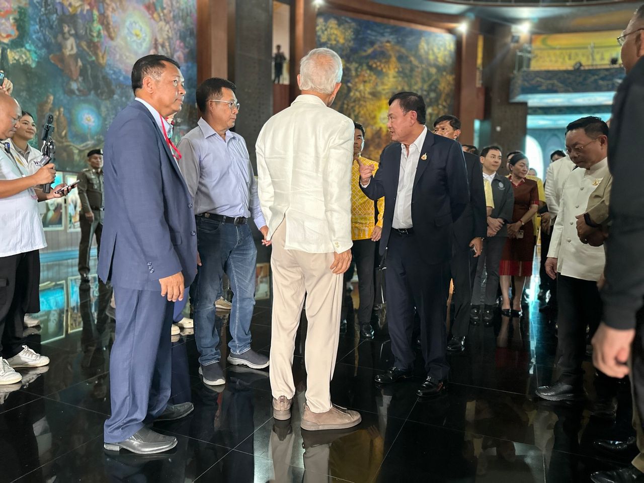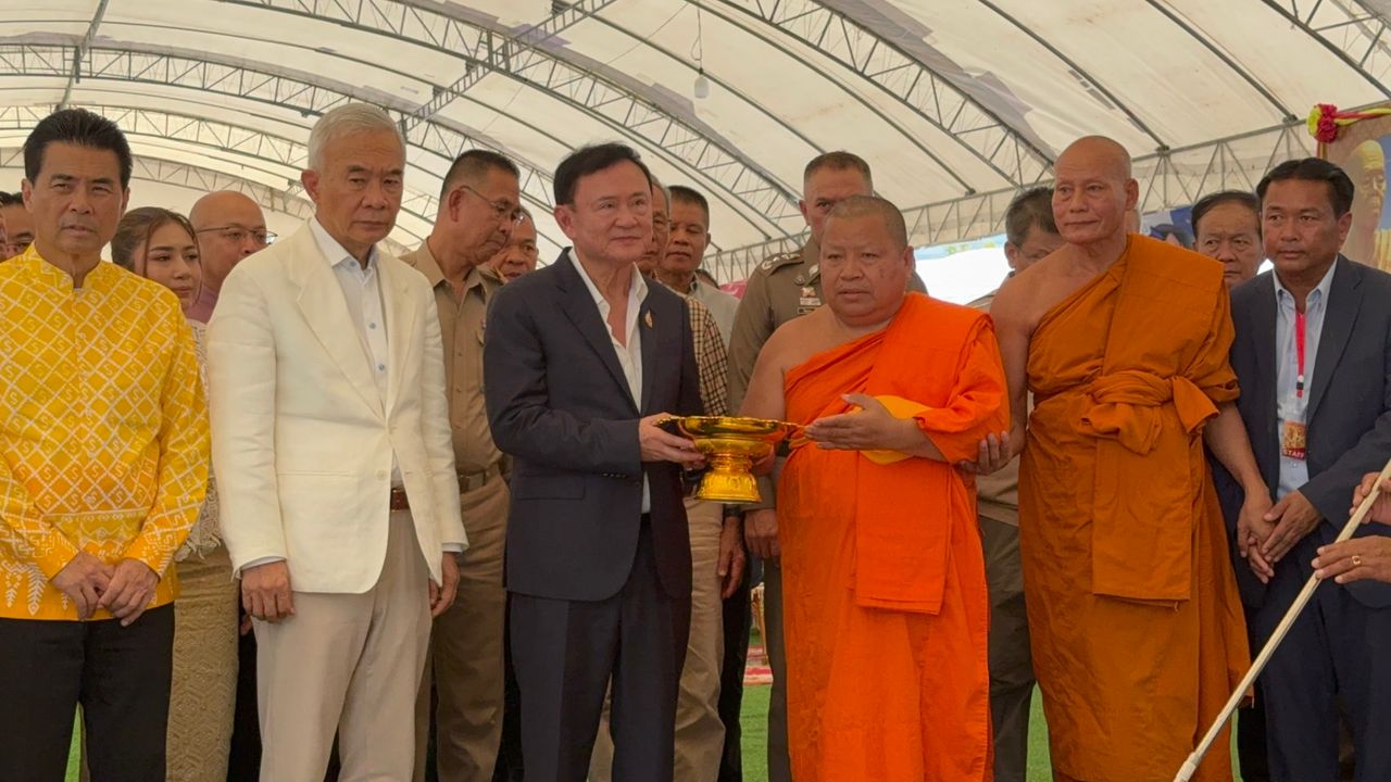 “ทักษิณ” เดินทางถึงวัดบ้านไร่กราบรูปหล่อหลวงพ่อคูณ บรรดารัฐมนตรี-สส. โคราช แฟนคลับเสื้อแดงแห่ต้อนรับ ร้องเพลงแฮปปี้เบิร์ธเดย์ล่วงหน้า ก่อนนั่งสามล้อพ่วง เพื่อเป็นประธานทอดผ้าป่า-เททองหล่อพ่อคูณ