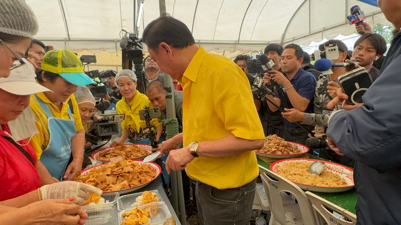 อดีตนายกฯ ทักษิณ โชว์ผัดข้าวผัด-แพ็คอาหารกล่องแจกชาวบ้านที่ศูนย์พักพิง เจอเซอร์ไพรส์คนแห่ร้องเพลงเบิร์ธเดย์อวยพร แต่เจอหญิงวัยกลางคนตะโกนด่า “ไหนบอกเป็นเพื่อนกัน แล้วทำไมเพื่อนมายิงคนไทย”