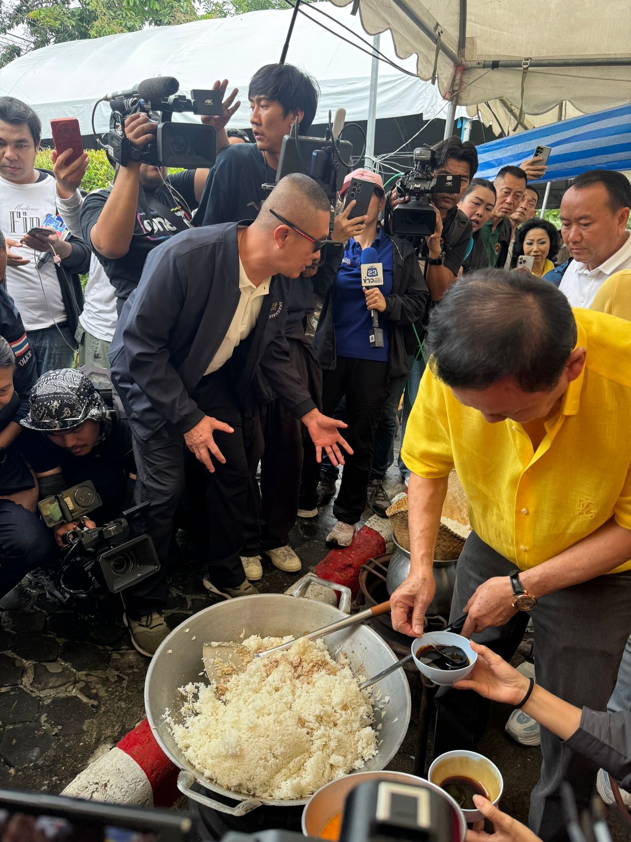 วันที่ 26 ก.ค. 2568 ที่จ.อุบลราชธานี นายทักษิณ ชินวัตร อดีตนายกรัฐมนตรี เดินทางเยี่ยมประชาชนที่ศูนย์บริการสาธารณสุขชุมชนเทศบาลเมืองเดชอุดม ซึ่งเป็นศูนย์พักพิงชั่วคราวโดยนายทักษิณได้เยี่ยมโรงครัว เพื่อร่วมช่วยแพ็คอาหารกล่อง และโชว์ลีลาผัดข้าวผัด ซึ่งนายทักษิณลงมือทำเองตั้งแต่ขั้นตอนแรก พร้อมชิมเจ้าตัวบอกว่าอร่อย นายทักษิณบอกอีกว่าไม่ได้ทำอาหารนานมาทำวันนี้เป็นครั้งแรกฝีมือยังไม่ตกยังอร่อยอยู่ จากนั้นได้ตักข้าวผัดให้ สส.เพื่อไทยชิม