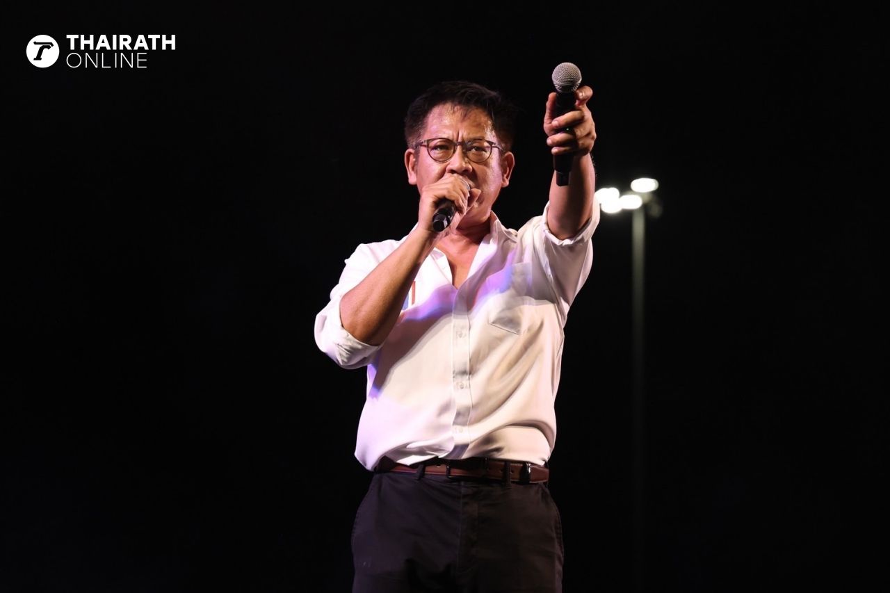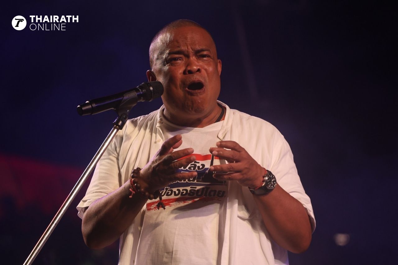 “จตุพร” ปราศรัยถามถ้า “ทักษิณ” ไม่กลับ ไทยจะมีปัญหากับกัมพูชาไหม บอกเสียใจ ไทยได้เสียดินแดนในวันเฉลิมพระชนมพรรษาของ ร.10 ด้าน “ทนายนกเขา” ประกาศชวนมวลชน บอกไม่นานเกินรอ ต้องไปปิดล้อมทำเนียบ