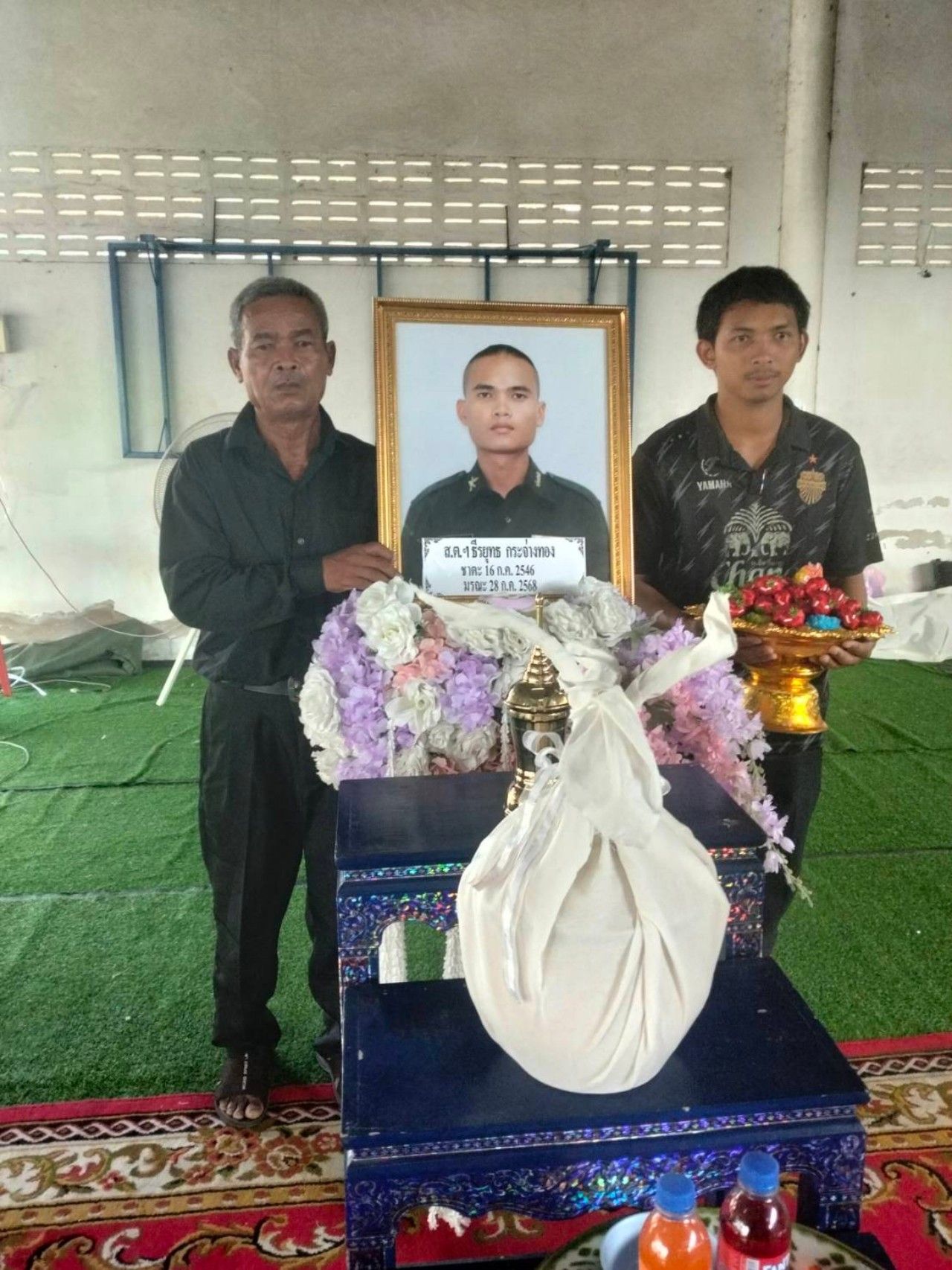 ทางด้าน นางติน กระจ่างทอง แม่ของพลทหารธีรยุทธ กล่าวทั้งน้ำตาว่า ขอบคุณทุกภาคส่วนที่ช่วยเหลือ และอาสาจะก่อสร้างบ้านให้เพื่อสานฝันให้กับลูกชายที่เคยสัญญากับพ่อแม่ไว้ว่า หลังจากปลดประจำการทหารแล้วจะพยายามสอบเข้ารับราชการทหารให้ได้เพื่อจะสร้างบ้านให้พ่อแม่อยู่อย่างสุขสบาย แต่ก็มาเสียชีวิตก่อน หัวอกคนเป็นแม่ก็เสียใจที่สูญเสียลูก แต่ก็ภูมิใจที่ลูกได้รับใช้ชาติ ขอบคุณทุกคนที่ช่วยสานฝันให้กับดวงวิญญาณของลูกชาย