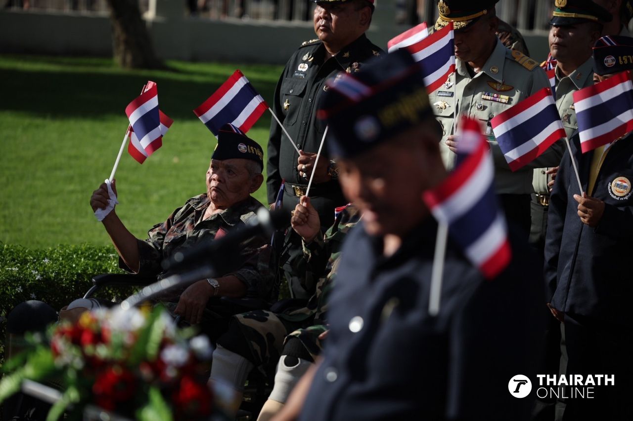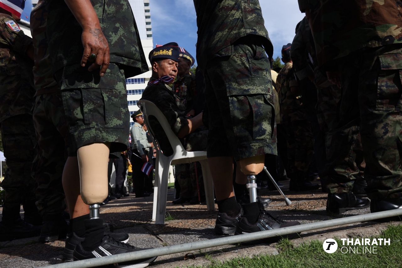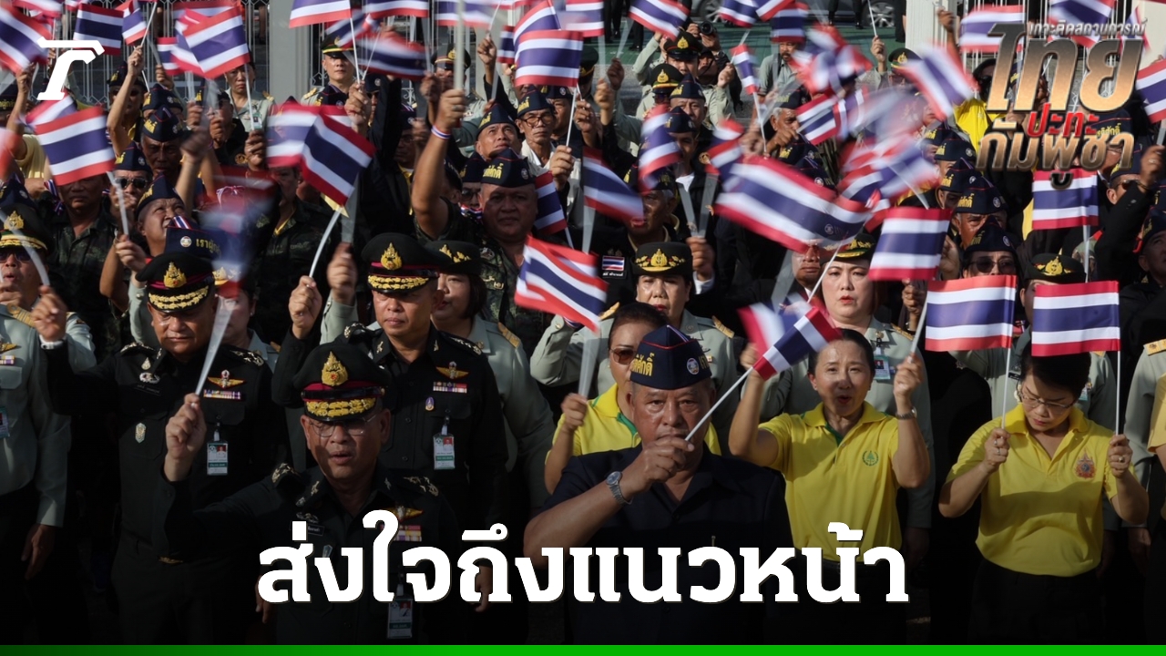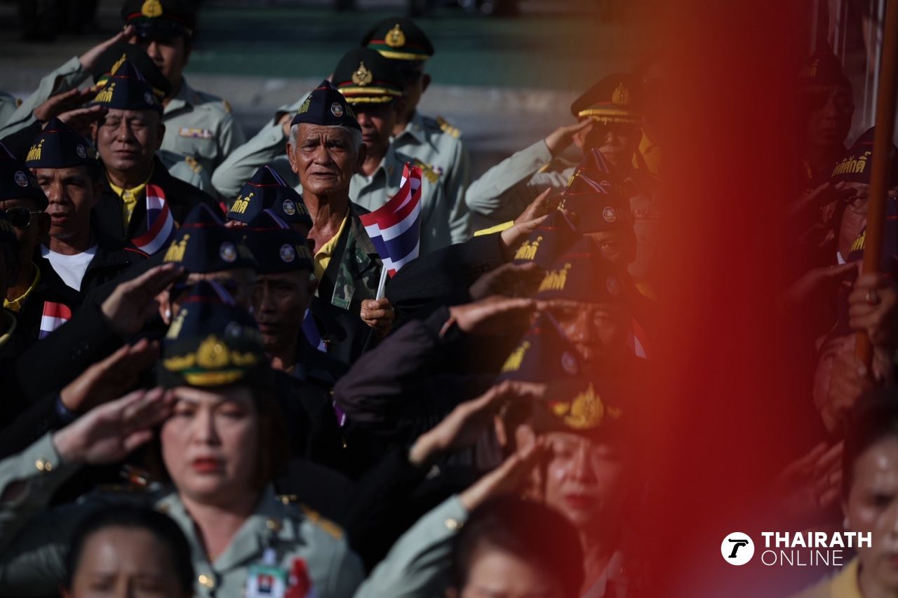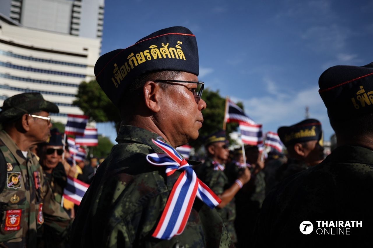 “ทหารผ่านศึก” พร้อมใจรวมพลังปกป้องแผ่นดิน โบกธงไทยร้องเพลงชาติ ส่งใจถึงแนวหน้า สดุดีนักรบผู้กล้า ปกป้องเอกราชและรักษาอธิปไตยของชาติ