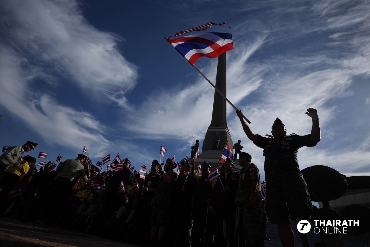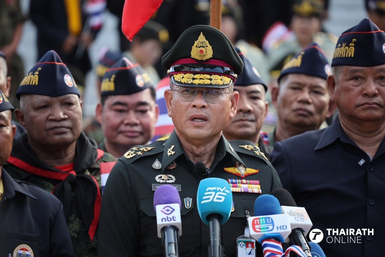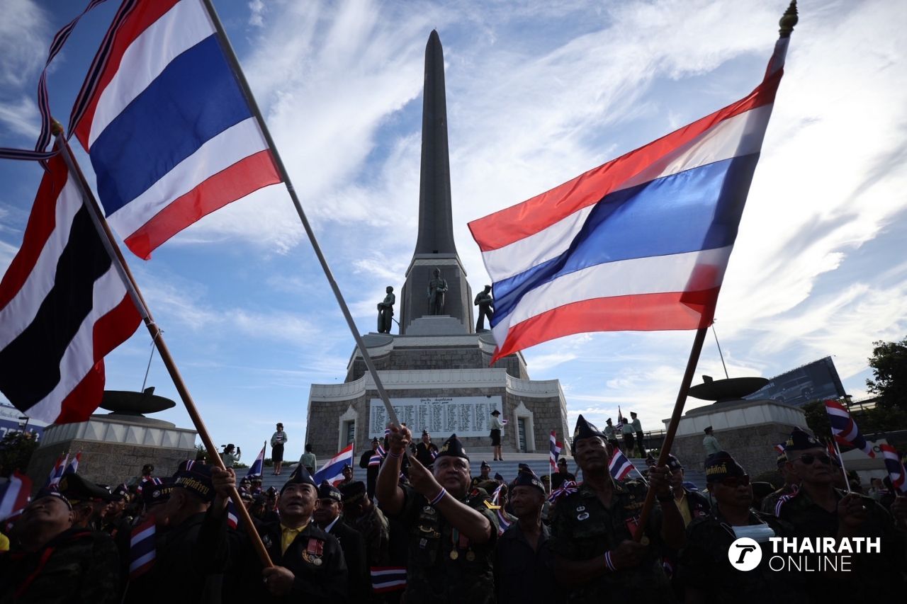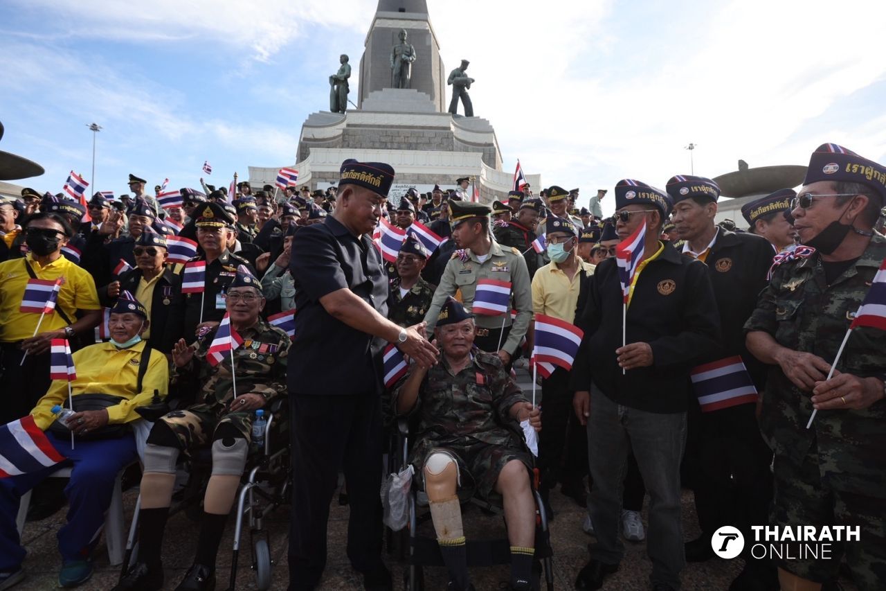 “ทหารผ่านศึก” พร้อมใจรวมพลังปกป้องแผ่นดิน โบกธงไทยร้องเพลงชาติ ส่งใจถึงแนวหน้า สดุดีนักรบผู้กล้า ปกป้องเอกราชและรักษาอธิปไตยของชาติ