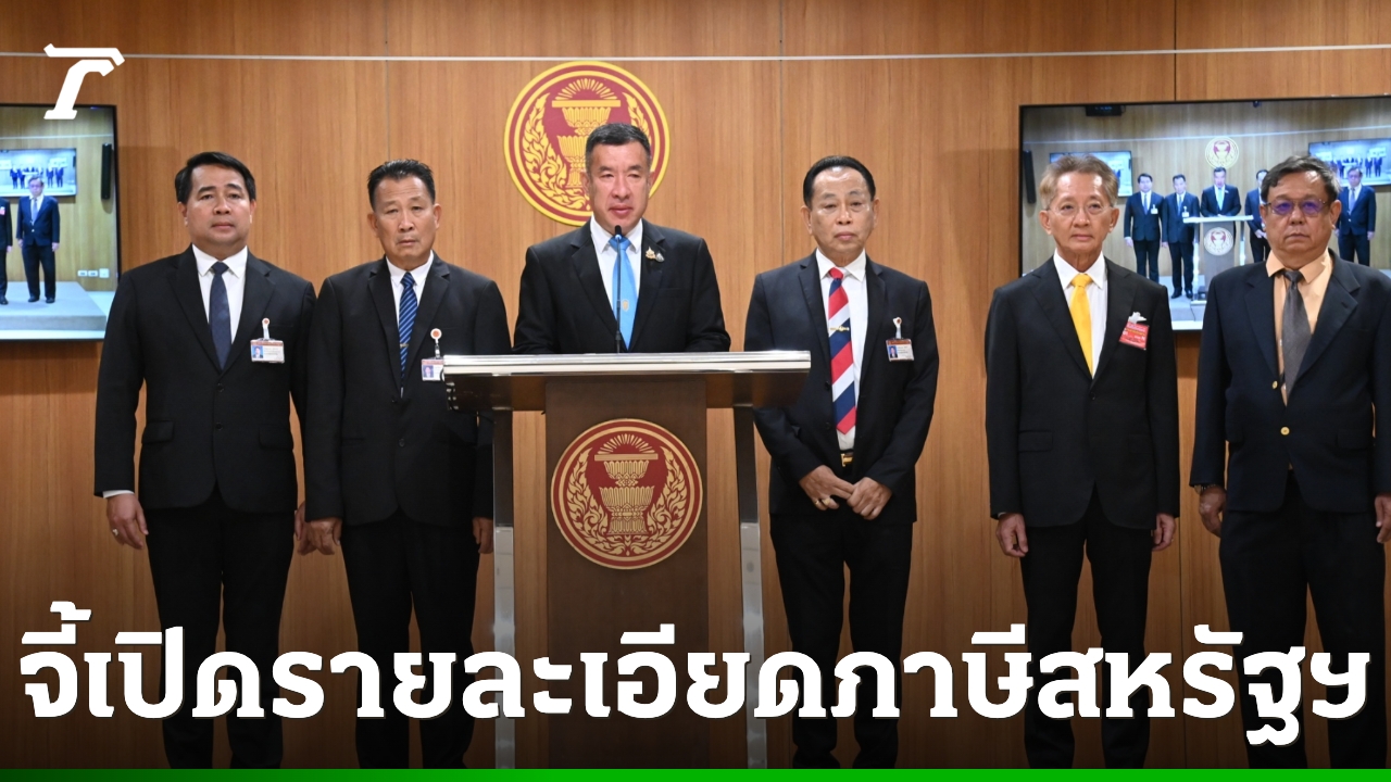 “ธีระชัย” นำทีมพรรคพลังประชารัฐ ดาหน้า ซัดรัฐบาล บี้ต้องเปิดรายละเอียดเจรจาภาษีสหรัฐฯ และข้อแลกเปลี่ยนสินค้า 1.1 หมื่นรายการ ย้ำกระทบภาคเกษตรกรรมไทยแน่ ทั้งข้าวโพด เนื้อหมู แนะเปลี่ยนงบกระตุ้นเศรษฐกิจ 1.57 แสนล้าน มาเป็นงบพยุง