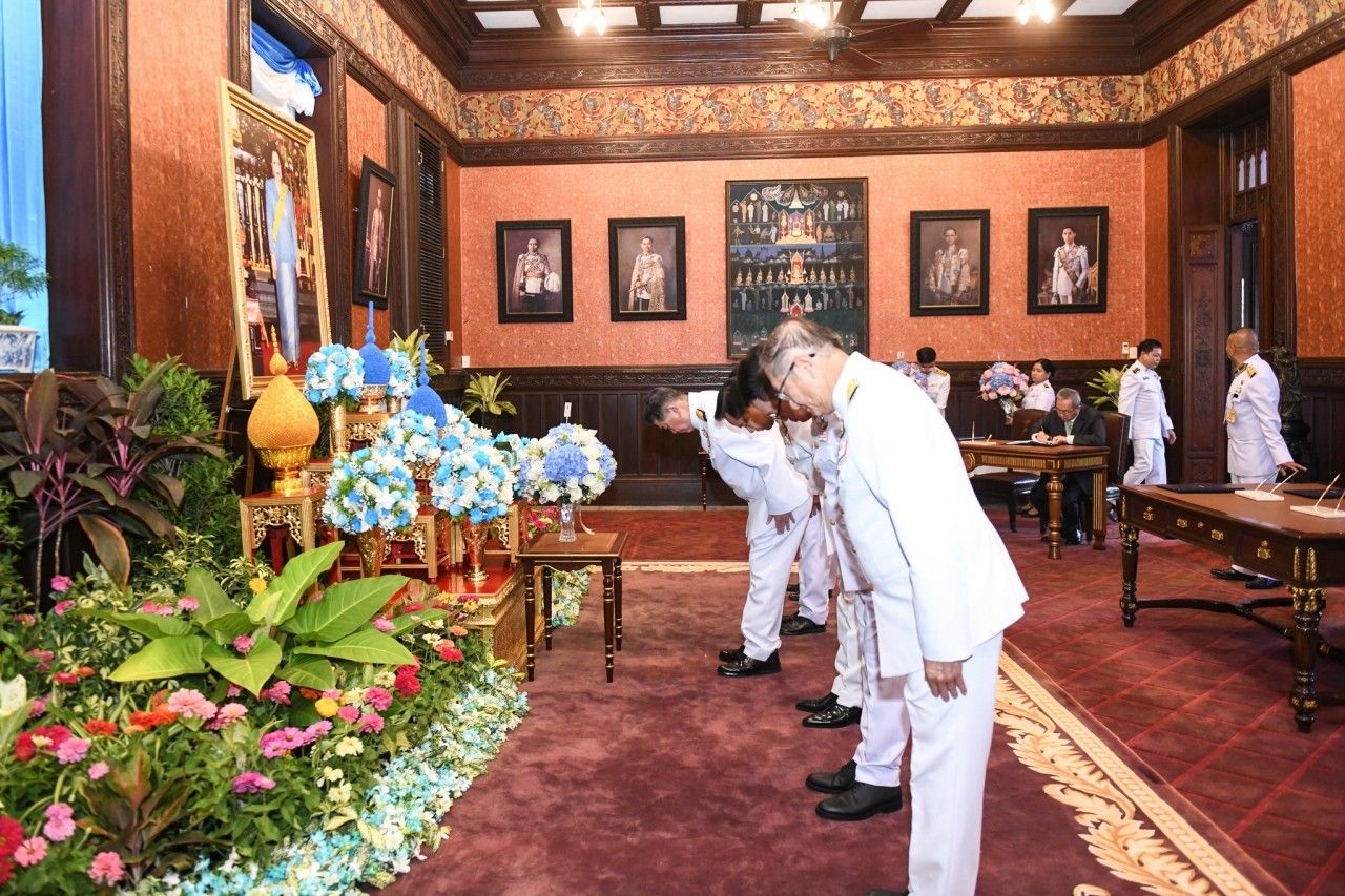 จากนั้นรักษาราชการแทนนายกรัฐมนตรีและภริยา ลงนามถวายพระพรชัยมงคล ถวายความเคารพพระฉายาลักษณ์ฯ ตามด้วยคณะรัฐมนตรีและคู่สมรส.