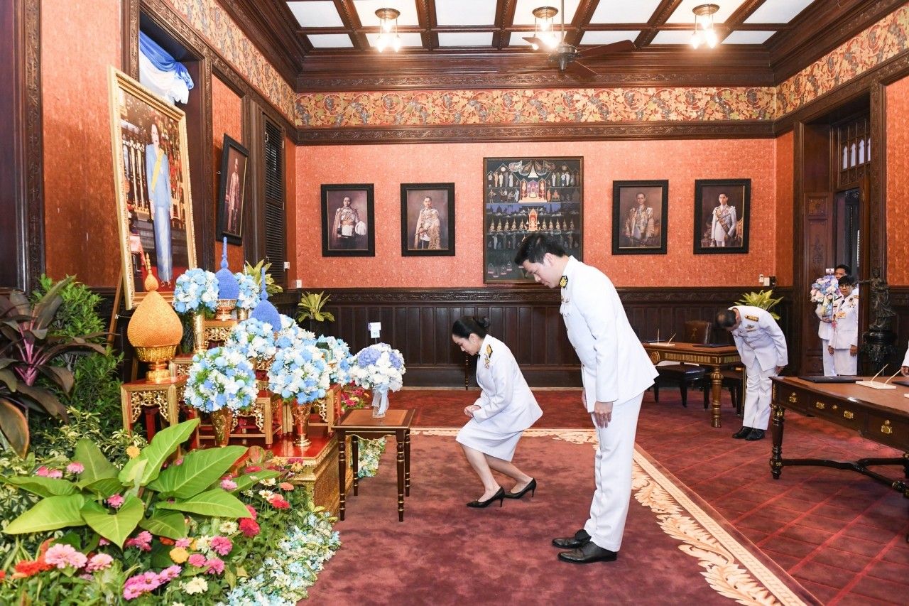 ชุดที่ 1 รักษาราชการแทนนายกรัฐมนตรี พร้อมรองนายกรัฐมนตรี ทูลเกล้าฯ ถวายแจกันดอกไม้ในนามนายกรัฐมนตรีและคณะรัฐมนตรี