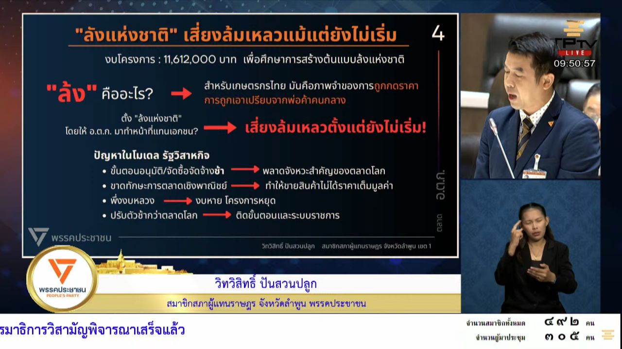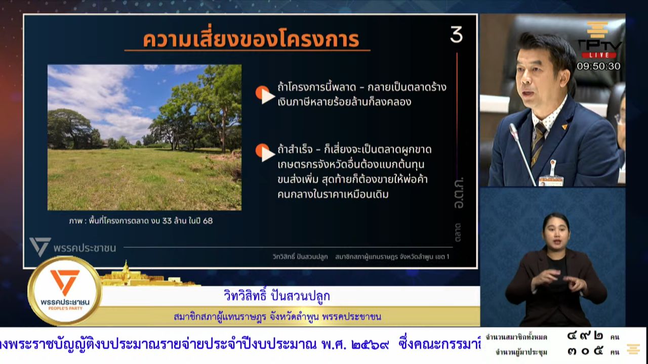 ถกต่องบประมาณ 2569 วาระ 2 สส.ลำพูน พรรคประชาชน แฉเทงบ อ.ต.ก. 41 ล้าน ลงพะเยา กระจุกตัวจังหวัดเดียว ข้องใจใช้เหตุผลทางเศรษฐกิจหรือการเมือง ชี้ โครงการล้งแห่งชาติ เสี่ยงล้มตั้งแต่ยังไม่เริ่ม