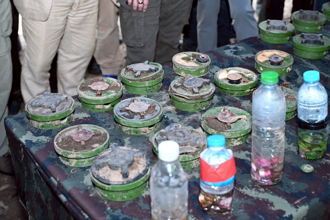 ล่าสุด พล.ต.วินธัย สุวารี โฆษกกองทัพบก กล่าวว่า ทุ่นระเบิดที่นำมาจัดแสดงให้คณะผู้แทนจากต่างประเทศได้ดู ในส่วนที่ นายเฮง รัตนา กล่าวว่า ทุ่นระเบิดยังไม่ดึงสลักนิรภัยออกนั้น ถูกตรวจพบจากการเข้าตรวจค้นและทำพื้นที่ให้ปลอดภัยโดยหน่วยทหารช่าง เมื่อวันที่ 4 สิงหาคม 2568 บริเวณพื้นที่ภูมะเขือ ในจุดที่ทหารกัมพูชาเคยวางกำลังอยู่บริเวณดังกล่าว ฝ่ายไทยได้ตรวจพบทุ่นระเบิดเป็นจำนวนมาก ส่วนใหญ่เป็นทุ่นระเบิดแบบ PMN-2 ซึ่งที่พบมีทั้ง 2 ลักษณะ คือทุ่นระเบิดที่เก็บไว้ยังไม่ได้นำไปติดตั้ง จึงเห็นในภาพว่ายังมีสลักนิรภัยติดอยู่ และทุ่นระเบิดที่ติดตั้งแล้ว ซึ่งในกรณีนี้จะไม่มีสลักนิรภัย โดยทั้งสองลักษณะได้ถูกนำมาแสดงให้คณะผู้แทนจากต่างประเทศได้ดูเมื่อวานนี้ (16 สิงหาคม 2568)