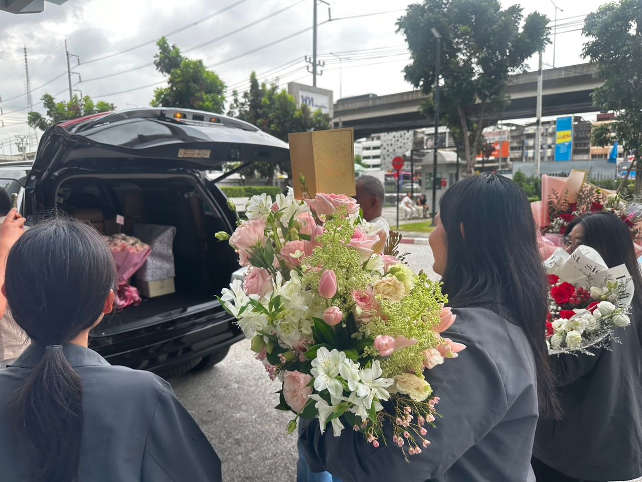 ขณะที่มีมวลชนกลุ่มผู้สนับสนุนพรรค เดินทางมาพบและนำดอกไม้พร้อมของขวัญมาให้กำลังใจ และเตรียมอวยพรวันเกิด น.ส.แพทองธาร ล่วงหน้าเช่นกัน