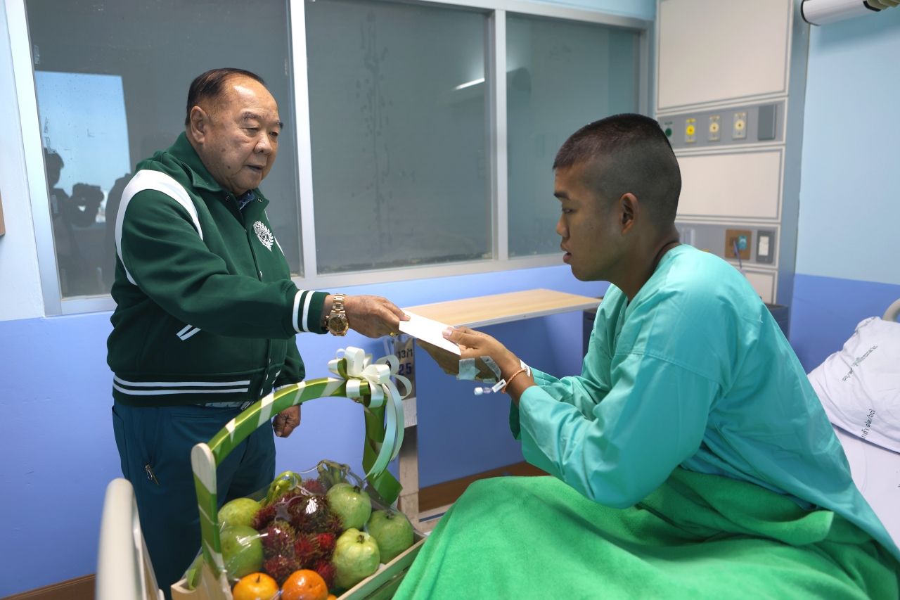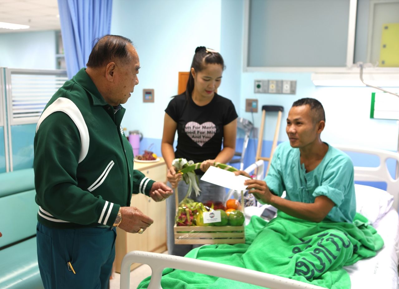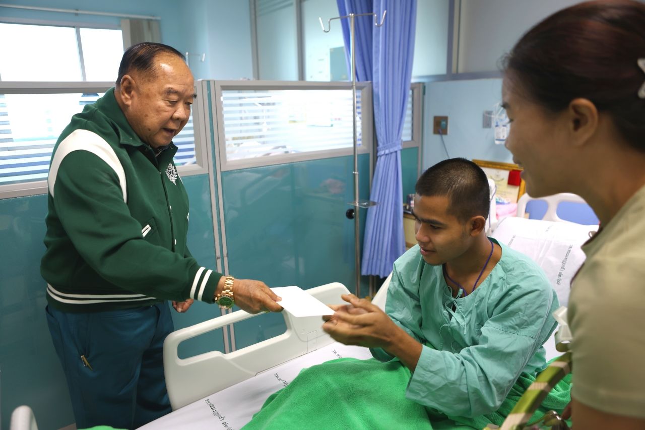 “วันนี้ผมมาในฐานะพี่คนหนึ่งที่เคยทำงานกับน้องๆ ทหารทุกคน ไม่ใช่เรื่องการเมือง แต่เป็นเรื่องหัวใจของคนเคยร่วมรบ ร่วมทุกข์ร่วมสุขกัน ผมเสียใจที่น้องๆ ต้องบาดเจ็บ แต่ก็ภูมิใจที่ทุกคนยังยืนหยัดปกป้องประเทศชาติอย่างกล้าหาญ อยากให้กำลังใจ ขอให้หายไวๆ อยากบอกว่าชาติบ้านเมืองยังยืนอยู่ได้เพราะความเสียสละของน้องๆ ทุกคน ไม่ต้องห่วงเรื่องอื่น ห่วงสุขภาพให้มากๆ พี่จะยืนอยู่ข้างๆ เสมอ เห็นน้องๆ เจ็บ ผมก็เจ็บด้วย เพราะผมเองก็เคยผ่านสนามรบ ผมรู้ดีว่าการเสียสละทุกครั้งมันมีราคาที่ต้องจ่าย แต่สิ่งที่น้องๆ ทำให้ชาติ มันมีค่ามากกว่าคำพูดใดๆ อยากฝากถึงครอบครัวทหารว่า ลูกหลานของท่านไม่ได้เจ็บฟรี ทุกหยดเลือดคือเกียรติยศของกองทัพและของชาติ ผมจะอยู่เคียงข้าง ให้เกียรติ และไม่ลืมความเสียสละนี้”