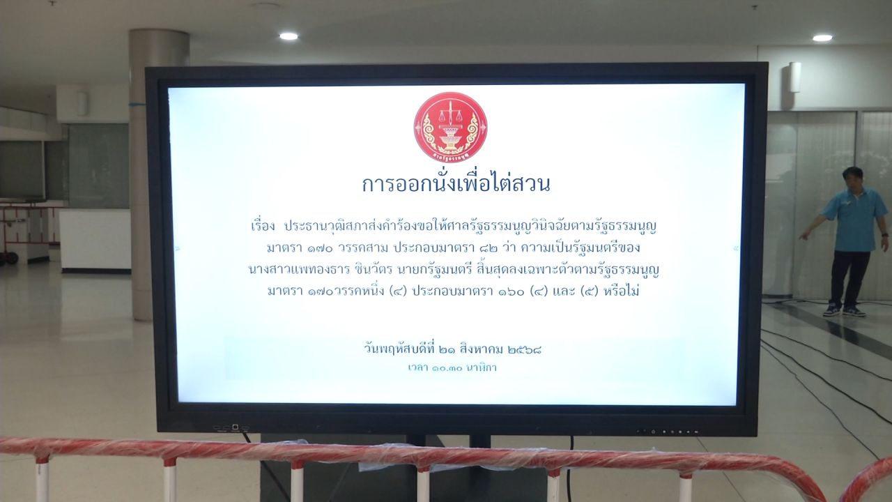 ผู้สื่อข่าวรายงานว่าในวันที่ 21 สิงหาคม 2568 เจ้าหน้าที่สำนักงานศาลรัฐธรรมนูญ แจ้งว่าจะมีการถ่ายทอดภาพจากวงจรปิดการไต่สวนจากห้องพิจารณาคดี ลงมาให้ผู้สื่อข่าวที่มาติดตามทำข่าวได้รับชมผ่านโทรทัศน์ที่ทางศาลเตรียมไว้บริเวณโถงด้านล่าง โดยไม่อนุญาตให้ผู้สื่อข่าวเข้ารับฟังภายในห้องขณะไต่สวน ซึ่งไทยรัฐออนไลน์และไทยรัฐทีวีจะร่วมเกาะติดและรายงานสถานการณ์ที่สำคัญนี้ด้วย ล่าสุดเมื่อเวลาประมาณ 16.30 น. พบเจ้าหน้าที่จัดเตรียมสถานที่ด้านล่างแล้ว โดยโทรทัศน์ 2 เครื่อง และมีรั้วกั้นไว้