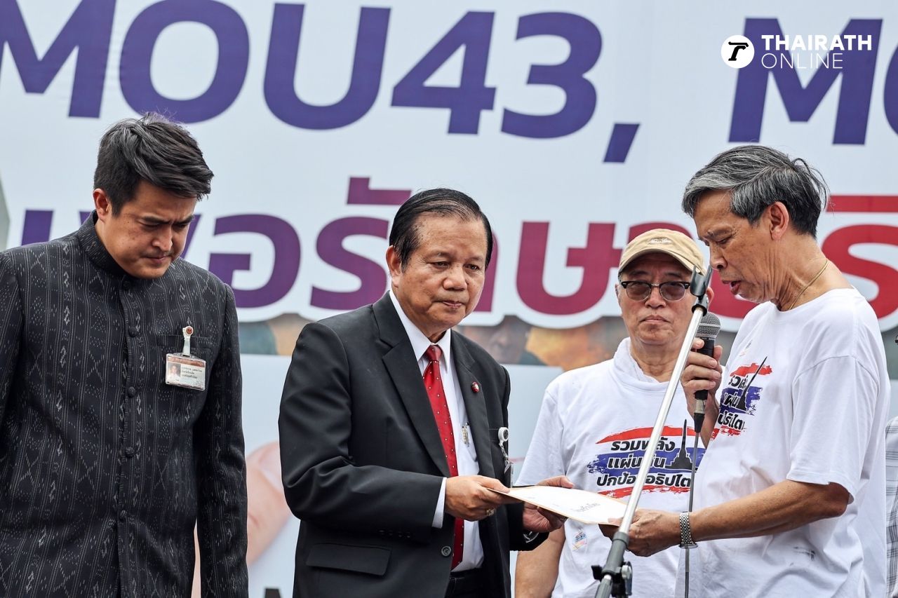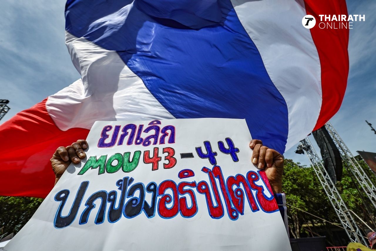 ทั้งนี้ กลุ่มมวลชนรวมตัวที่ลานประชาชน มีการตั้งเวทีปราศรัยของแกนนำวิทยากรและการเล่นดนตรีสลับกันโดยมีแกนนำ อาทิ นพ.ตุลย์ สิทธิสมวงศ์ นักเคลื่อนไหวทางการเมือง, นพ.วรงค์ เดชกิจวิกรม ประธานพรรคไทยภักดี, นายแก้วสรร อติโพธิ อดีตแนวร่วม กปปส. และนายพิชิต ไชยมงคล แกนนำ คปท. นำการชุมนุม โดยกลุ่มผู้ชุมนุมนำธงชาติไทยมาโบก และป้ายข้อความเรียกร้องให้ยกเลิก MOU และเรียกร้องให้นายกรัฐมนตรีลาออก