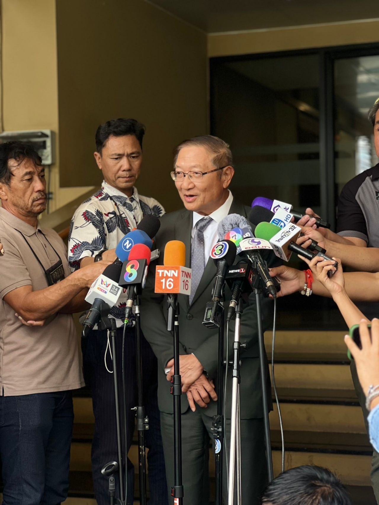 ต่อมาเวลา 13.45 น. นพ.พรหมินทร์ เลิศสุริย์เดช เลขาธิการนายกรัฐมนตรี ให้สัมภาษณ์โดยขอชี้แจงกรณีที่มีข่าวเกี่ยวกับ น.ส.แพทองธาร พูดในที่ประชุม ครม. เกี่ยวข้องกับศาล ขอแก้ข่าวตรงนี้ว่า ข้อเท็จจริงนายกรัฐมนตรีทราบดีว่าขณะนี้อยู่ระหว่างการพิจารณาคดีของศาลรัฐธรรมนูญ การที่ น.ส.แพทองธาร ตัดสินใจเข้าร่วมประชุม ครม. ผ่านระบบซูม ก็เพราะต้องการหลีกเลี่ยงการตอบคำถามสื่อมวลชนที่อาจจะตั้งคำถามมากมาย โดยเกรงว่าจะกระทบกระเทือนต่อรูปคดี ซึ่งเป็นการตัดสินใจที่ชัดเจน