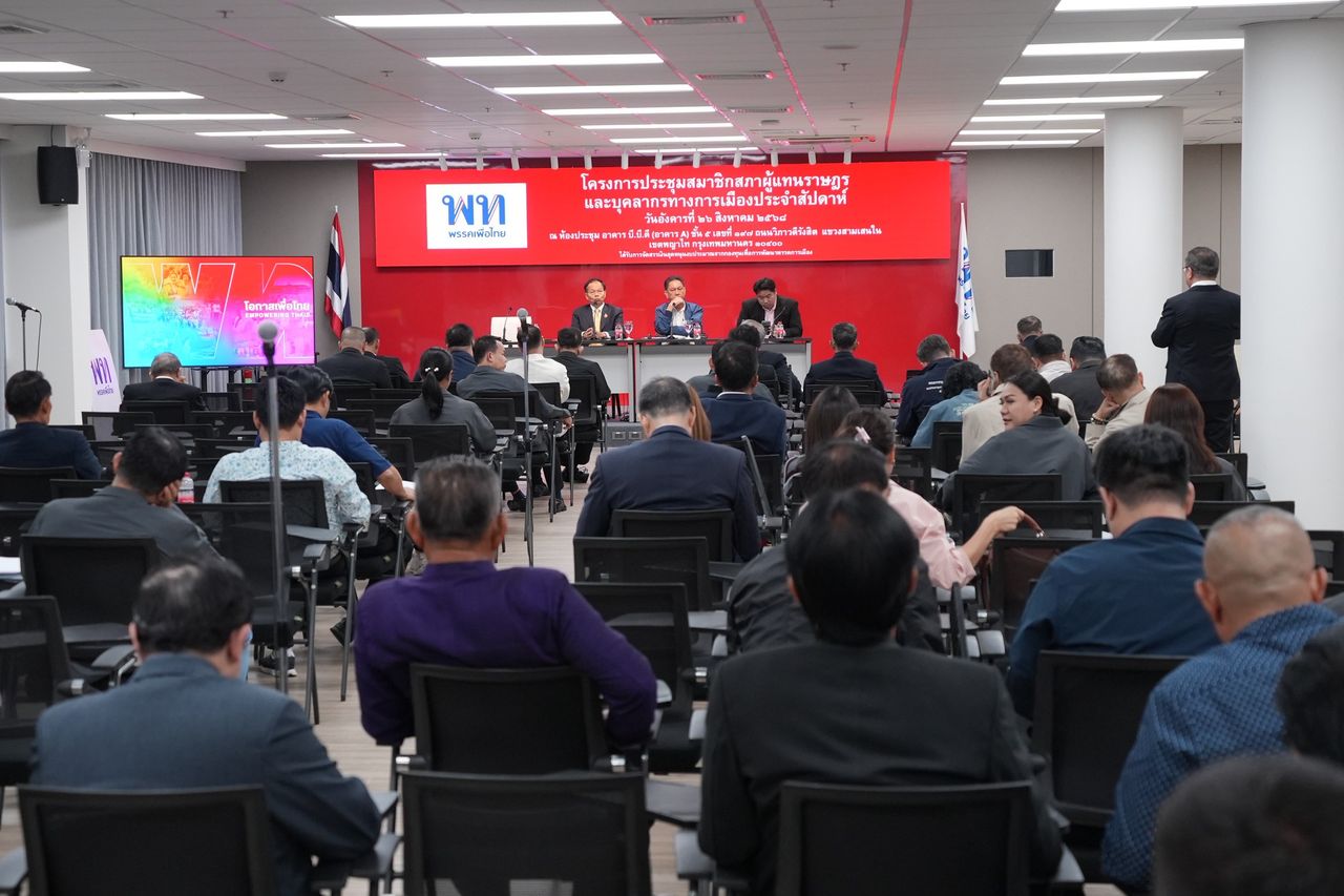 วันที่ 26 ส.ค. 2568 เมื่อเวลา 15.00 น. ที่พรรคเพื่อไทย (พท.) มีการประชุม สส. พรรคเพื่อไทยประจำสัปดาห์ โดยมีนายวิสุทธิ์ ไชยณรุณ สส. บัญชีรายชื่อ และประธาน สส. พรรคทำหน้าที่ประธานการประชุม โดยในที่ประชุมพรรคเพื่อไทย ได้มีการแจ้ง สส. ที่เข้าร่วมประชุมว่าในวันที่ 29 ส.ค. นี้ ที่ศาลรัฐธรรมนูญนัดวินิจฉัยคดีคลิปเสียงของ น.ส. แพทองธาร ชินวัตร นายกฯ และรมว. วัฒนธรรม ขอให้ สส. มารวมตัวกันที่พรรคเพื่อไทยในเวลา 14.00 น. ก่อนจะไปให้กำลังใจน.ส. แพทองธารที่จะรอฟังคำวินิจฉัยที่ทำเนียบรัฐบาล โดยทางพรรคเพื่อไทยจะจัดรถให้ทุกคนนั่งไปด้วยกัน ขณะที่ในส่วนของรัฐมนตรีจะไปรวมตัวกันที่ทำเนียบรัฐบาลเพื่อให้กำลังใจน.ส. แพทองธารด้วยเช่นกัน