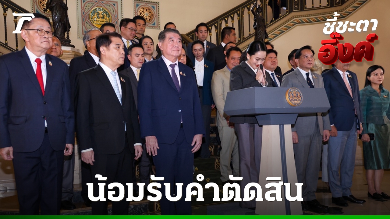 “อิ๊งค์” พา ครม. แถลงน้อมรับคำตัดสินศาลรัฐธรรมนูญ ย้ำมีความตั้งใจทำเพื่อประเทศ ชี้เป็นคนไทยคนหนึ่งที่มีความรักชาติ ศาสนา พระมหากษัตริย์สุดหัวใจ ขณะที่ไร้เงา “สุชาติ” ร่วมวงด้วย