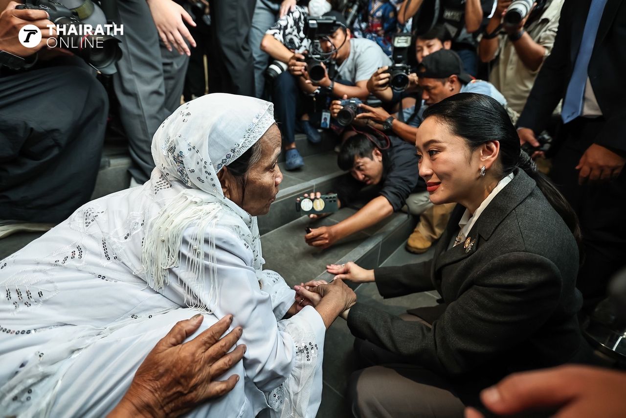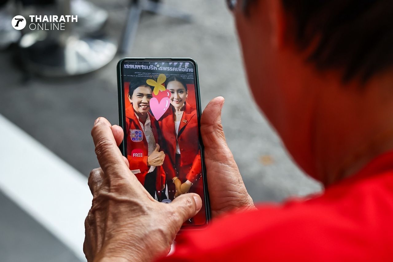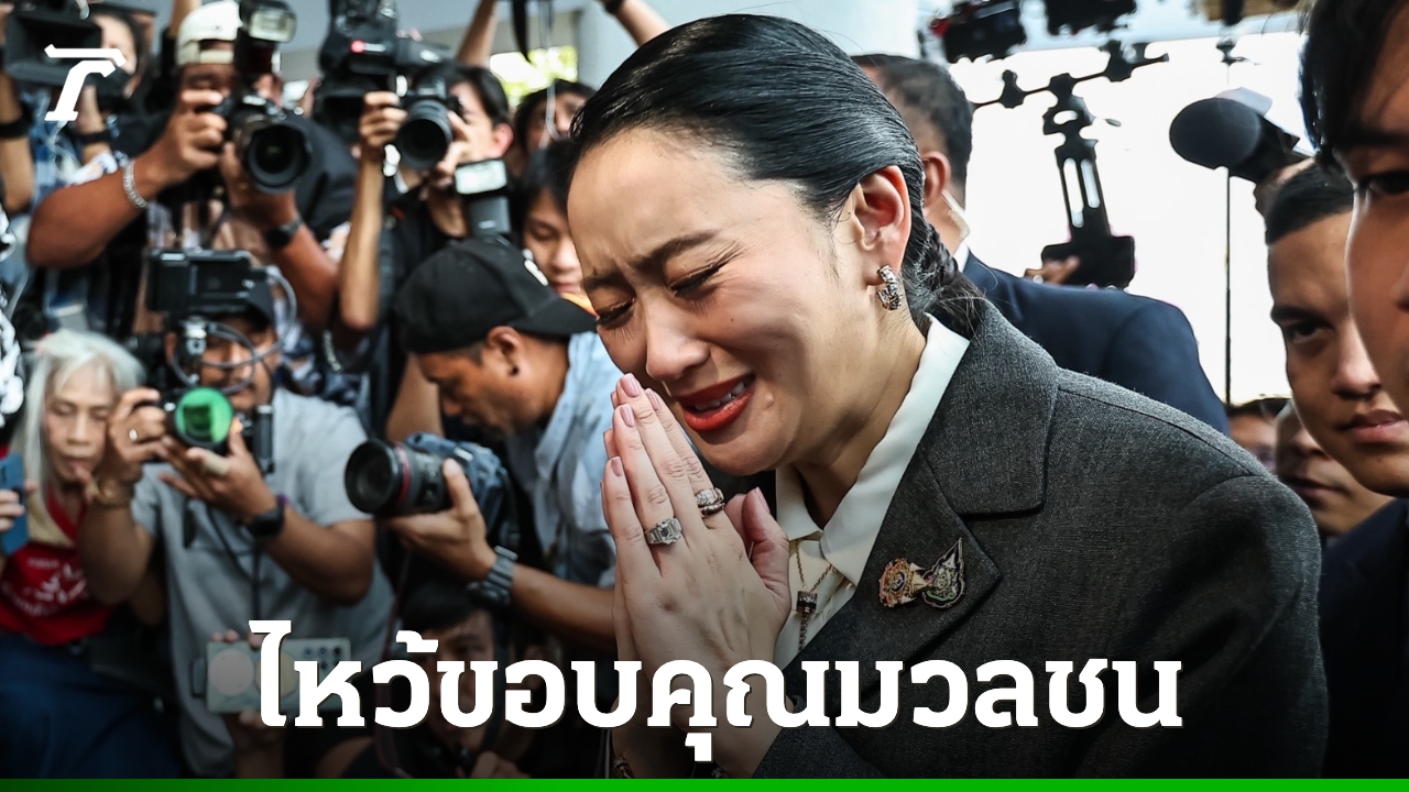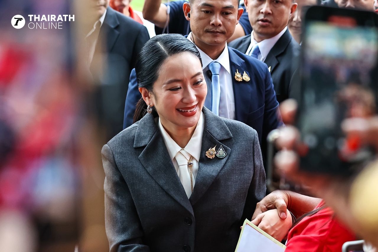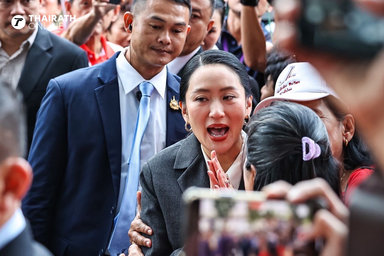 “แพทองธาร ชินวัตร” ยิ้มรับพร้อมยกมือไหว้ขอบคุณมวลชนที่มาให้กำลังใจ หน้าตึกพรรคเพื่อไทย ด้าน “ทักษิณ” สีหน้าเครียดก้มหน้าคุยโทรศัพท์ ไม่ตอบคำถามสื่อ