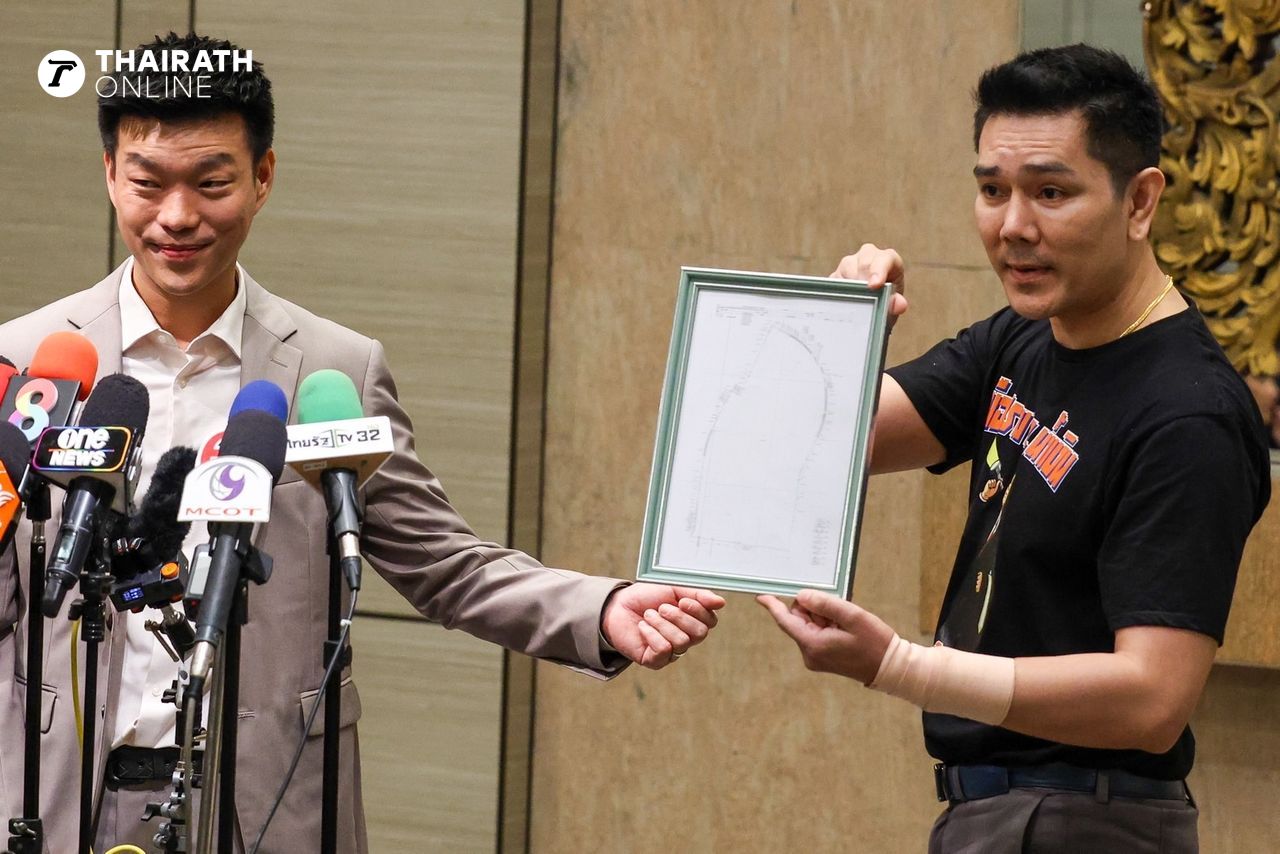 ผู้สื่อข่าวยังรายงานว่า ในช่วงของการแถลงข่าว นายภัทรพงศ์ ศุภักษร หรือ ทนายอั๋น บุรีรัมย์ ได้ยื่นโฉนดที่ดินเขากระโดง ประกอบการตัดสินใจของพรรคประชาชนด้วย