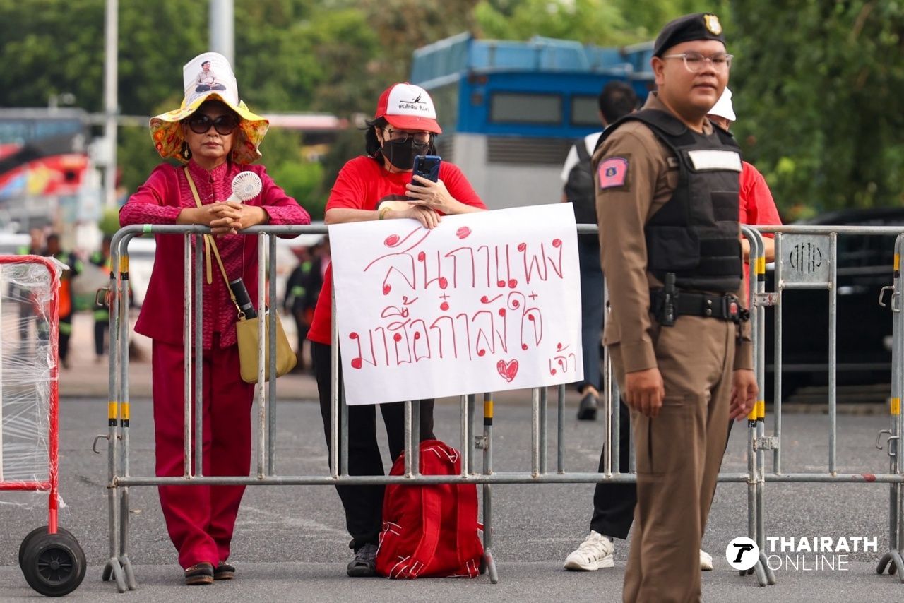 ที่ศาลฎีกาฯ เช้านี้ มวลชนเสื้อแดง ทยอยมาให้กำลังใจ "ทักษิณ" ฟังคำสั่งคดีชั้น 14 ด้านเจ้าหน้าที่ตำรวจจัดกำลังดูแลความปลอดภัย จำกัดพื้นที่เพื่อความเรียบร้อย