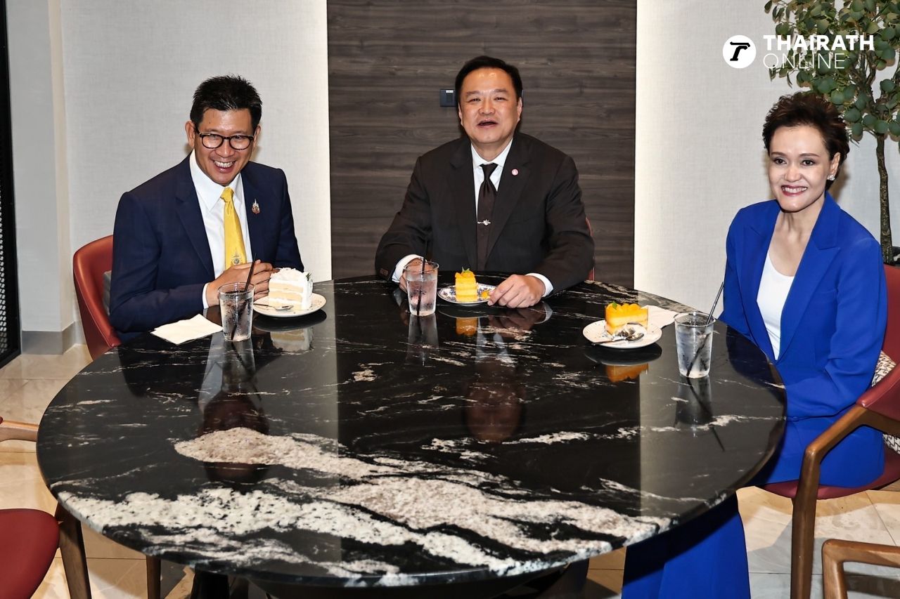ทั้งนี้ ความเป็นพรรคพวกกันมาก่อนและการรู้จักกันอย่างดี ก็จะทำให้เกิดการร่วมมือกันเป็นอย่างดี ไม่มีการขัดแข้งขัดขา และไม่ต้องกังวลว่าพรรคนั้นจะได้คะแนนมากกว่า ซึ่งตนได้พูดคุยกับพรรคร่วมรัฐบาลเหมือนกัน และวันนี้มีแต่พรรคประเทศไทย เราจะให้ความสนับสนุนการทำงานของคณะรัฐมนตรีทุกคน ทุกพรรค ตราบใดที่สิ่งที่นำเสนอนั้นมีประโยชน์ต่อส่วนรวม จากนั้นนายกรัฐมนตรี ได้เชิญ นายเอกนิติ และนางศุภจี ไปร่วมวงรับประทานเค้กส้มที่ร้านกาแฟจาริสต้าร์ภายในพรรคภูมิใจไทย.