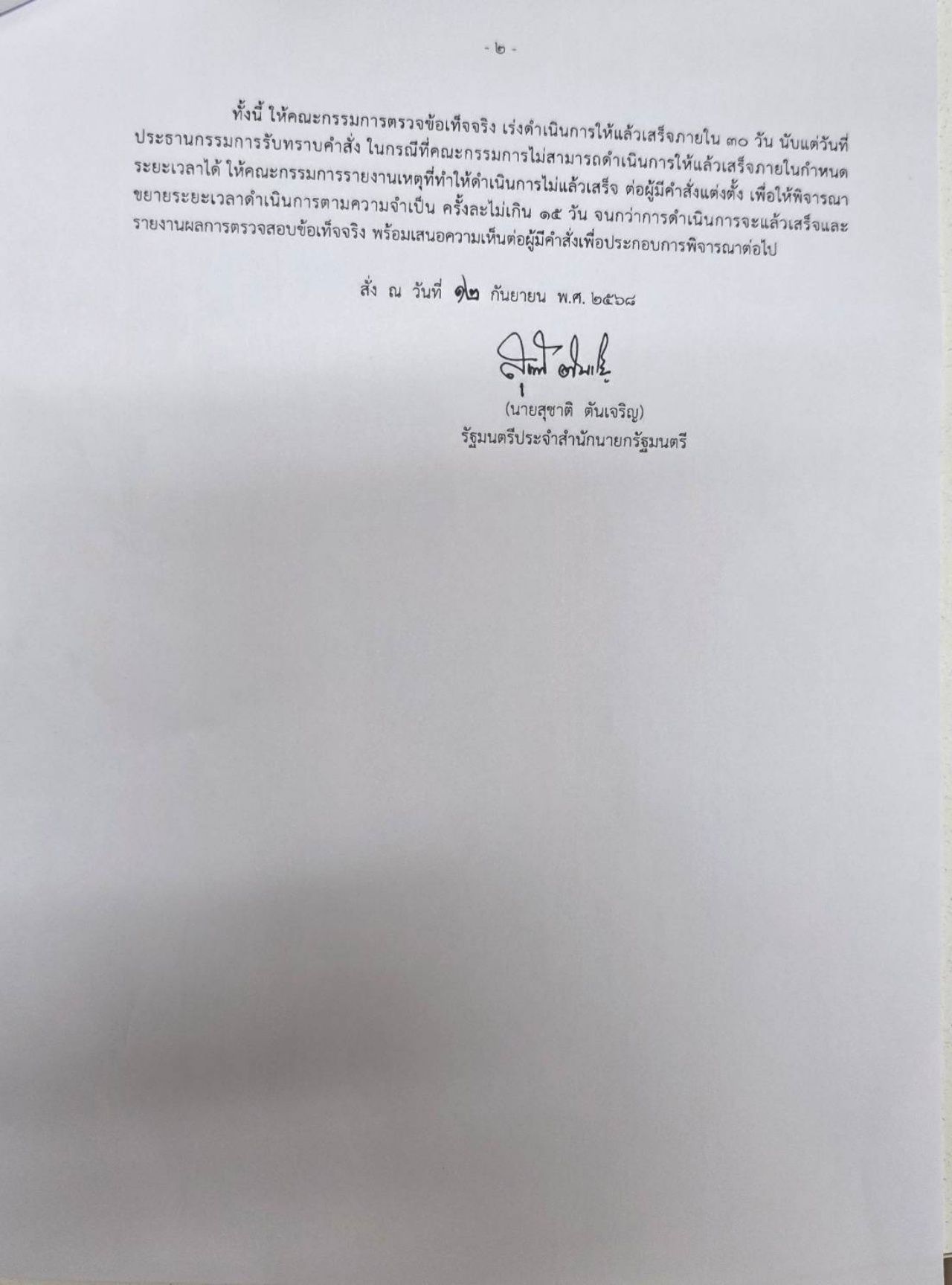 เมื่อถามว่า วางกรอบระยะเวลาการตรวจสอบไว้เท่าใด นายสุชาติ กล่าวว่า ขณะนี้ยังไม่ได้วาง แต่คาดว่าไม่น่าจะเกิน 1 สัปดาห์ เพราะจังหวัดฉะเชิงเทราเป็นพื้นที่ของตน ถ้าไม่ทำก็ไม่ได้ และตนก็เป็นรัฐมนตรีประจำสำนักนายกรัฐมนตรี ที่ประชาชนเลือกมาเป็นผู้แทน ยอมรับว่าเรื่องนี้มีมานาน ตนก็เคยไปสอบถามและเตือนเจ้าอาวาสมาแล้ว ว่ามีเรื่องใดที่ผิดพระธรรมวินัย แต่เนื่องจากวันนี้มีเสียงร้องเรียนจากโซเชียล จึงต้องดำเนินการ