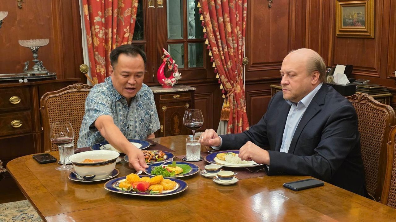 เมื่อเวลา 14.25 น. วันที่ 14 กันยายน 2568 นายอนุทิน ชาญวีรกูล นายกรัฐมนตรี และหัวหน้าพรรคภูมิใจไทย มีความเคลื่อนไหวผ่านทางเฟซบุ๊กส่วนตัว Anutin Charnvirakul พร้อมภาพถ่ายกับภริยา จ๋า ธนนนท์ นิรามิษ ขณะต้อนรับ นายเยฟกินี โทมิคิน เอกอัครราชทูตสหพันธรัฐรัสเซียประจำประเทศไทย และมีการรับประทานอาหารร่วมกัน พร้อมข้อความโดยสรุปว่า