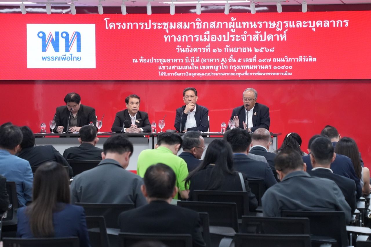 เมื่อเวลา 15.00 น. วันที่ 16 กันยายน 2568 ผู้สื่อข่าวรายงานจากพรรคเพื่อไทย ว่า ในการประชุมพรรคเพื่อไทยประจำสัปดาห์ นายชูศักดิ์ ศิรินิล รองหัวหน้าพรรค และนายสุริยะ จึงรุ่งเรืองกิจ แกนนำพรรค เป็นประธานการประชุม เมื่อ น.ส.แพทองธาร ชินวัตร หัวหน้าพรรคเพื่อไทย และอดีตนายกรัฐมนตรี เดินเข้าห้องประชุม สมาชิกพรรคได้ปรบมือให้กำลังใจก่อนที่ น.ส.แพทองธาร จะเดินไปนั่งกับแกนนำพรรค