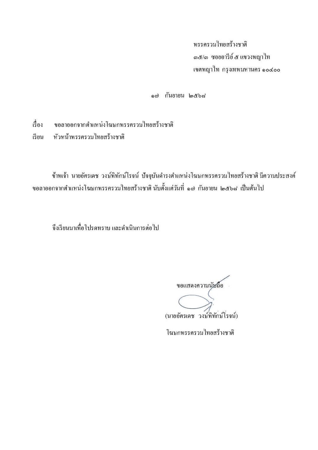 วันที่ 17 ก.ย. 2568 ผู้สื่อข่าวรายงานความเคลื่อนไหว นายเอกนัฏ พร้อมพันธุ์ สส.บัญชีรายชื่อ ในฐานะเลขาธิการพรรครวมไทยสร้างชาติ (รทสช.) ภายหลังมีกระแสข่าวเตรียมลาออกจากตำแหน่งเลขาธิการพรรค ล่าสุด เช้าวันที่ 17 ก.ย. นายเอกนัฏ ยื่นหนังสือลาออกจากตำแหน่งเลขาธิการพรรคอย่างเป็นทางการแล้ว เช่นเดียวกับ นายดวงฤทธิ์ เบ็ญจาธิกุล ชัยรุ่งเรือง สส.บัญชีรายชื่อ ได้ยื่นหนังสือลาออกจากตำแหน่งรองหัวหน้าพรรค และนายอัครเดช วงษ์พิทักษ์โรจน์ สส.ราชบุรี ได้ยื่นหนังสือลาออกจากโฆษกพรรคเช่นกัน
