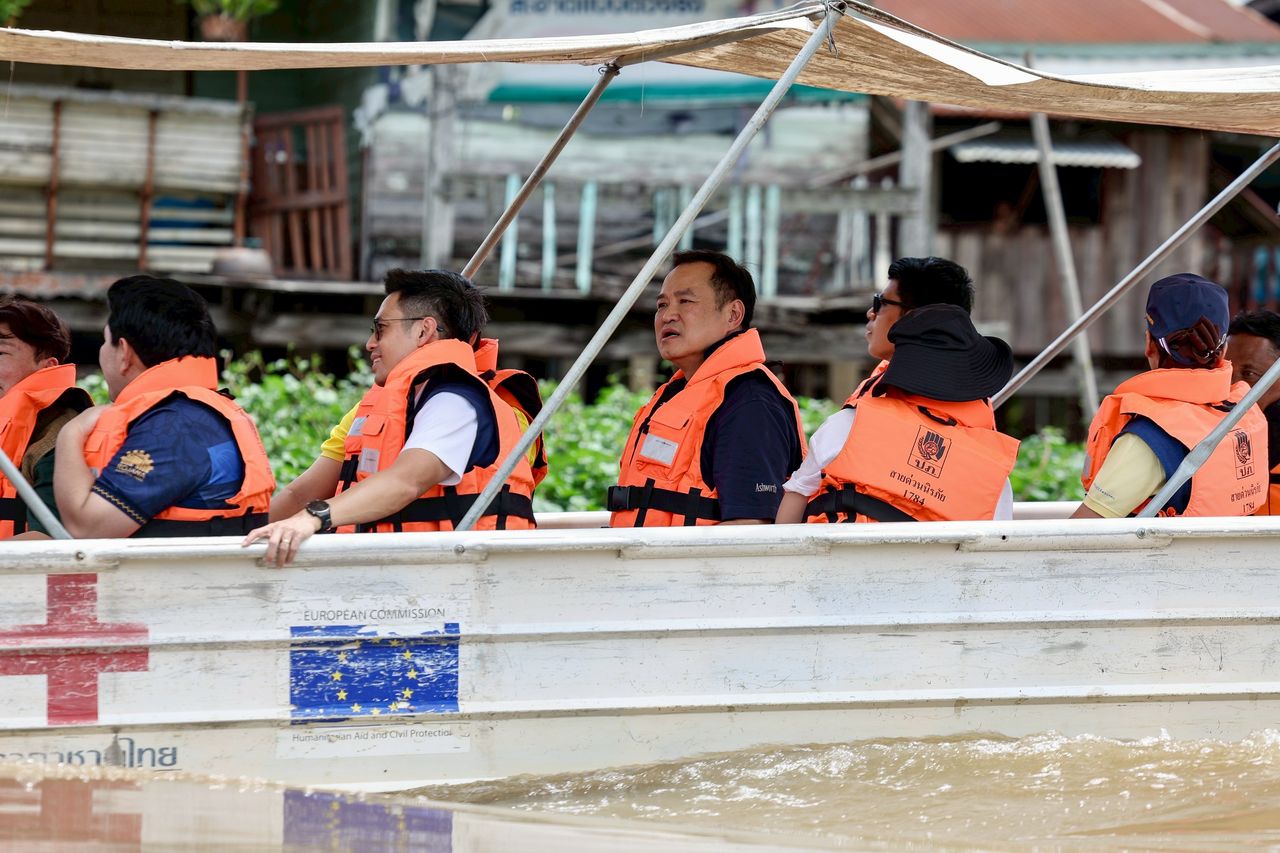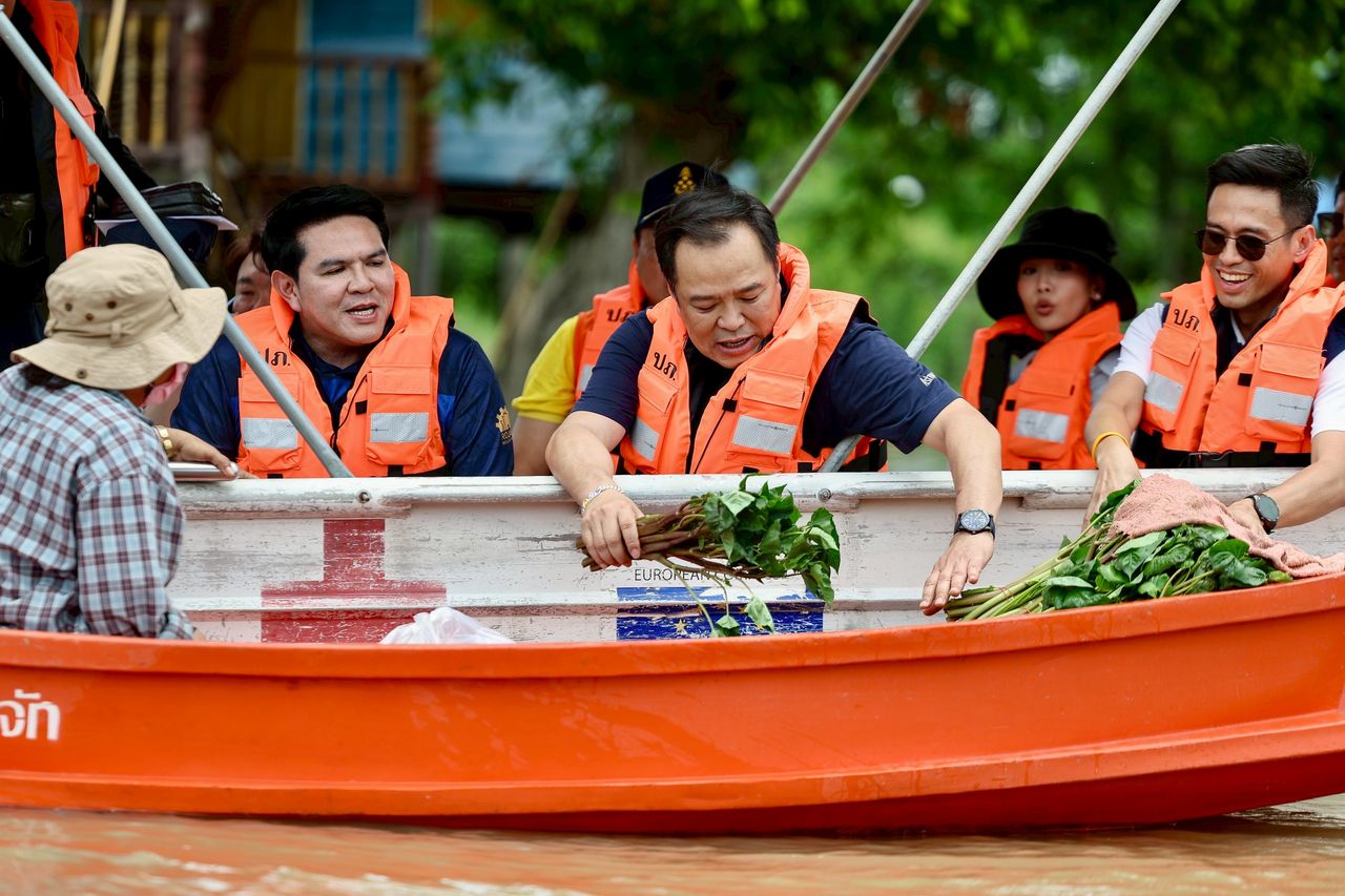 วันที่ 20 ก.ย. 2568 เมื่อเวลา 11:40 น. นายอนุทิน ชาญวีรกูล นายกรัฐมนตรี และรัฐมนตรีว่าการกระทรวงมหาดไทย พร้อมด้วยภริยา และคณะ เดินทางมายังท่าเรือศูนย์สภากาชาดไทยเวชพาหน์เฉลิมพระเกียรติ อำเภอวิเศษชัยชาญ จังหวัดอ่างทอง เพื่อขึ้นเรือเยี่ยมผู้ประสบอุทกภัย และมอบถุงยังชีพ โดยระหว่างล่องเรือตรวจดูระดับน้ำแม่น้ำน้อย และเยี่ยมประชาชน 2 ริมฝั่ง นายกรัฐมนตรีได้ยกนิ้วโป้ง ให้กำลังใจเจ้าหน้าที่ผู้ปฏิบัติงานริมฝั่งน้ำ พร้อมกับโบกมือให้กับประชาชนที่อยู่ในบ้านเรือนทั้ง 2 ฝั่ง ขณะที่ประชาชนบางส่วนได้โบกไม้โบกมือ และชูนิ้วโป้งสองข้าง ให้กับคณะของนายกรัฐมนตรี โดยนายกรัฐมนตรีได้แวะมอบถุงยังชีพให้กับประชาชน พร้อมกับกล่าวว่าสถานการณ์ของระดับน้ำเริ่มดีขึ้นแล้ว