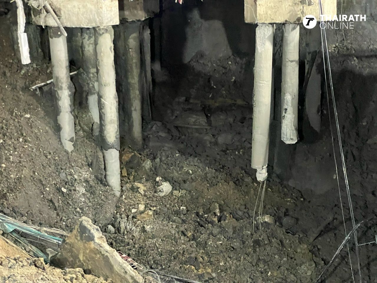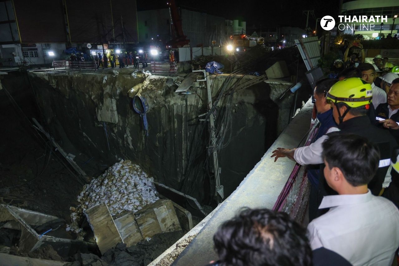 ส่วนตึกสูงโดยรอบนั้นทางโยธาธิการ จะมีการตรวจสอบอยู่แล้ว อย่างวชิรพยาบาล ที่เป็นตึกสูง มีที่จอดรถใต้ดิน จะมีกำแพงอยู่ใต้ดินอีกชั้นหนึ่ง ซึ่งเราจะสังเกตว่าดินที่ถล่มลงไปนั้นจะเป็นอาคารที่ไม่สูง ซึ่งอยู่ฝั่งตรงข้าม ตอนนี้เร่งอพยพคนออกไปทั้งหมดแล้ว และไม่มีการใช้งานอาคาร ทาง รฟม. ก็คงมีแผนว่าจะไปแก้ไขอาคารเหล่านั้นอย่างไร เนื่องจากมีบางอาคารที่เสาเข็มขาด เพราะเจาะเสาเข็มลงไปแค่ 21 เมตร จึงต้องมาดูว่า ในส่วนของอาคารที่เสาเข็มขาด จะเสริมกลับเข้ามาอย่างไร แต่ทุกอย่างต้องคำนึงถึงความปลอดภัยเป็นหลัก
