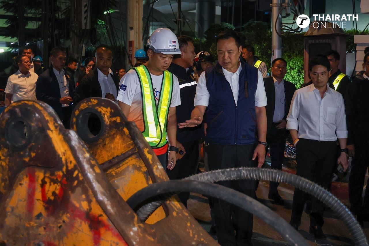 "นายกฯ อนุทิน" ลงพื้นที่ถนนทรุดรอบดึก รับเจ้าหน้าที่ต้องทำงานแข่งกับเวลา นำรถเครนขนาด 200 ตัน กู้บล็อกคอนกรีต จำนวน 4 ชิ้น ก่อนอัดกระสอบทราย เตรียมลงพื้นที่ชายแดน ลั่นจะไม่ยอมให้เสียอธิปไตยตย