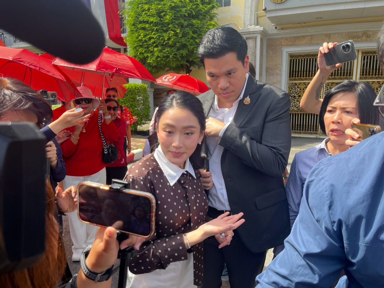 ซึ่ง น.ส.แพทองธาร และนายปิฎก ได้เดินเข้าหาคนเสื้อแดงพร้อมยกมือไหว้ ใบหน้ายิ้มแย้มแจ่มใส กล่าวขอบคุณคนเสื้อแดงที่มาให้กำลังใจ และบอกสั้น ๆ ว่า ตนมาเยี่ยมได้แค่วันจันทร์และวันพฤหัสบดีเท่านั้น เยี่ยมได้สองวันต่อสัปดาห์ เนื่องจากคนเสื้อแดงแจ้งต่อ น.ส.แพทองธาร ว่า อยากให้มาเยี่ยมนายทักษิณบ่อย ๆ พร้อมกล่าวแซวว่า ”เสียงเพลงข้างนอกดังอยู่นะ“ และระหว่างจะเดินเข้าเรือนจำฯ ผู้สื่อข่าวได้สอบถามว่า ”วันนี้หลาน ๆ ได้ฝากจดหมายมาถึงตาตาบ้างหรือไม่” ซึ่ง น.ส.แพทองธาร กล่าวตอบว่า “วันนี้ไม่มีค่ะ เดี๋ยวเขาจะมีอนุญาตให้เยี่ยมผ่านไลน์ได้ วิดีโอคอลไลน์ ซึ่งเขาจะมีเวลาให้ อย่างไรเดี๋ยวต้องถามทนาย”