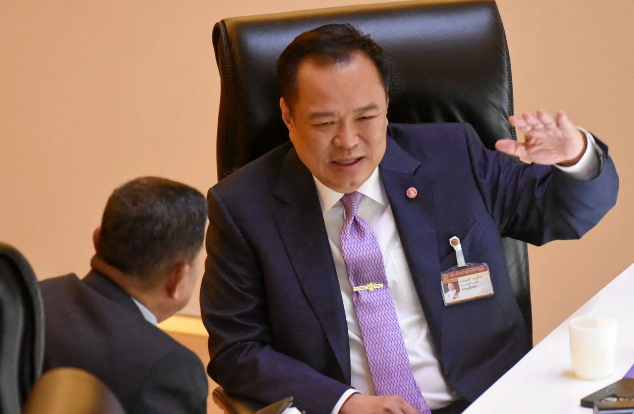 “เรื่องการเอามีดตัดมือตัวเอง สำหรับคนชื่ออนุทินไม่มี คนที่เอามีดตัดมือตัดแขนตัวเองก็คือคนที่ให้ผมออกจากรัฐบาลที่แล้วไม่อย่างนั้นมันก็ไม่มีวันนี้ เพราะฉะนั้นเราเห็นสิ่งที่มันไม่ดีเกิดขึ้นมาแล้ว และก็ไม่เป็นสิ่งที่เป็นประโยชน์ด้วย แต่ขอให้มันจบกัน อโหสิกัน แล้วจบกันไป เรามาแข่งขันกันทำคุณงามความดี ขายนโยบายให้กับพี่น้องประชาชน อีก 4 เดือนยุบสภา ได้เลือกตั้ง เราก็ไปเลือกตั้งกันด้วยความบริสุทธิ์ โปร่งใส รับรองว่าไม่ใช่เป็ดง่อย นี่หนูครับ ไม่ใช่เป็ด หนูไม่ง่อย เป็ดอาจจะง่อย ขอให้ท่านมีความมั่นใจว่ารัฐบาลนี้จะทำหน้าที่ตั้งแต่วินาทีนี้เป็นต้นไป”