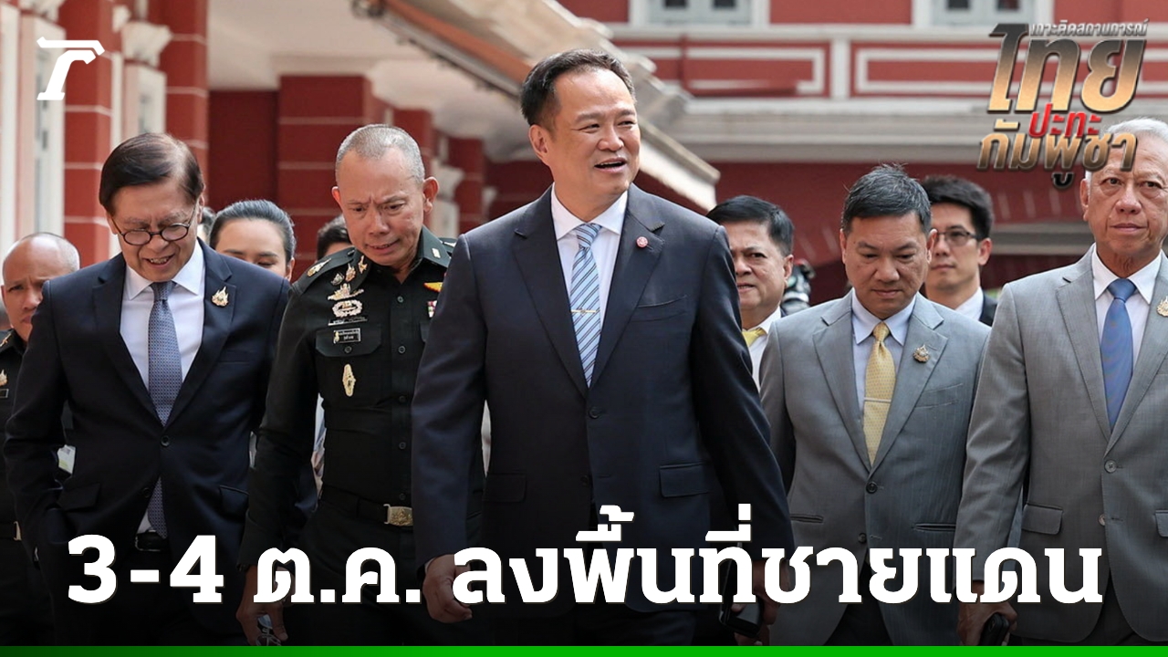 โฆษกรัฐบาล เผย “นายกฯ อนุทิน” เตรียมนำรัฐมนตรีส่วนหนึ่งลงพื้นที่สุรินทร์-บุรีรัมย์ 3-4 ต.ค.นี้ ติดตามสถานการณ์ชายแดนไทย-กัมพูชา พร้อมพบปะให้กำลังใจประชาชน-กำลังพล