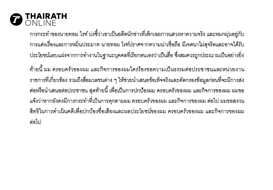 “ท้ายนี้ ผม ครอบครัวของผม และกิจการของผมได้ร้องขอความเป็นธรรมต่อประชาชนและหน่วยงานราชการที่เกี่ยวข้อง รวมถึงสื่อมวลชนต่าง ๆ ให้ช่วยกันกลั่นกรองข้อเท็จจริงและคัดกรองข้อมูลก่อนที่จะมีการส่งต่อหรือนำเสนอต่อประชาชน เพื่อเป็นการปกป้องชื่อเสียงของผม ครอบครัวของผม และกิจการของผม หากยังคงมีการกระทำที่เป็นการคุกคามผม ครอบครัวของผม และกิจการของผม ต่อไป ผมขอสงวนสิทธิในการดำเนินคดีเพื่อปกป้องชื่อเสียงและผลประโยชน์ของผม ครอบครัวของผม และกิจการของผมต่อไป”