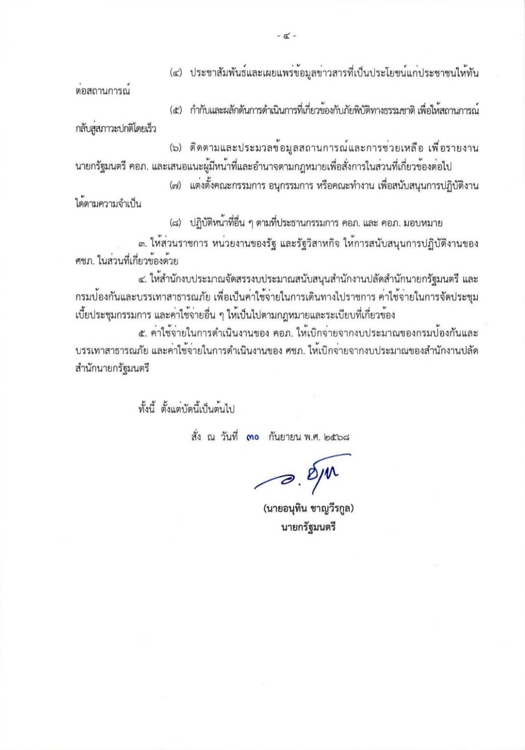 “นายกฯ อนุทิน” ประชุม คกก.อำนวยการและบริหารสถานการณ์ภัยพิบัติทางธรรมชาติ นัดแรก 6 ต.ค. ติดตามงานช่วยเหลือเยียวยาผู้ประสบภัย หลังสั่งตั้งกลไกดูแลใกล้ชิด