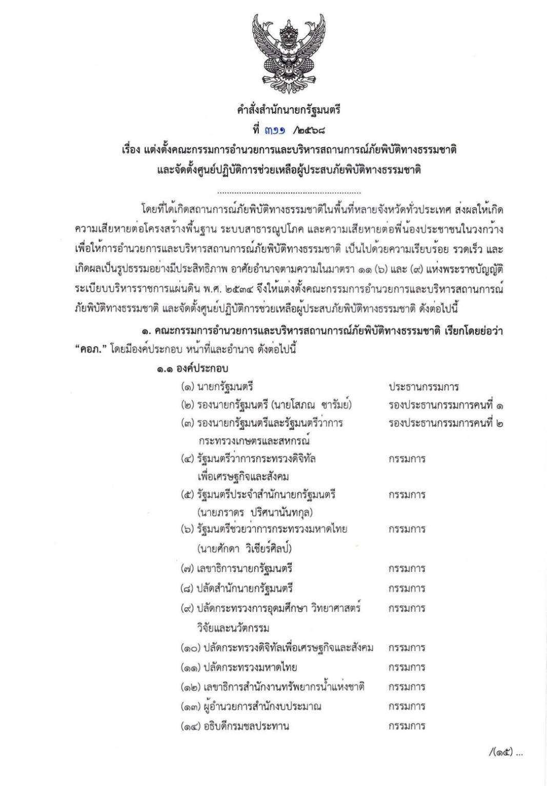 วันที่ 5 ตุลาคม 2568 ผู้สื่อข่าวรายงานว่า นายอนุทิน ชาญวีรกูล นายกรัฐมนตรีและรัฐมนตรีว่าการกระทรวงมหาดไทย จะเป็นประธานการประชุมนัดแรกของคณะกรรมการอำนวยการและบริหารสถานการณ์ภัยพิบัติทางธรรมชาติ (คอภ.) ในวันที่ 6 ตุลาคม 2568 เวลา 14.00 น. ณ ตึกภักดีบดินทร์ ทำเนียบรัฐบาล หลังมีคำสั่งสำนักนายกรัฐมนตรีที่ 311/2568 แต่งตั้งเมื่อวันที่ 30 กันยายน 2568 เพื่อกำกับ ติดตาม และบูรณาการการช่วยเหลือเยียวยาผู้ประสบภัยอย่างเป็นระบบ