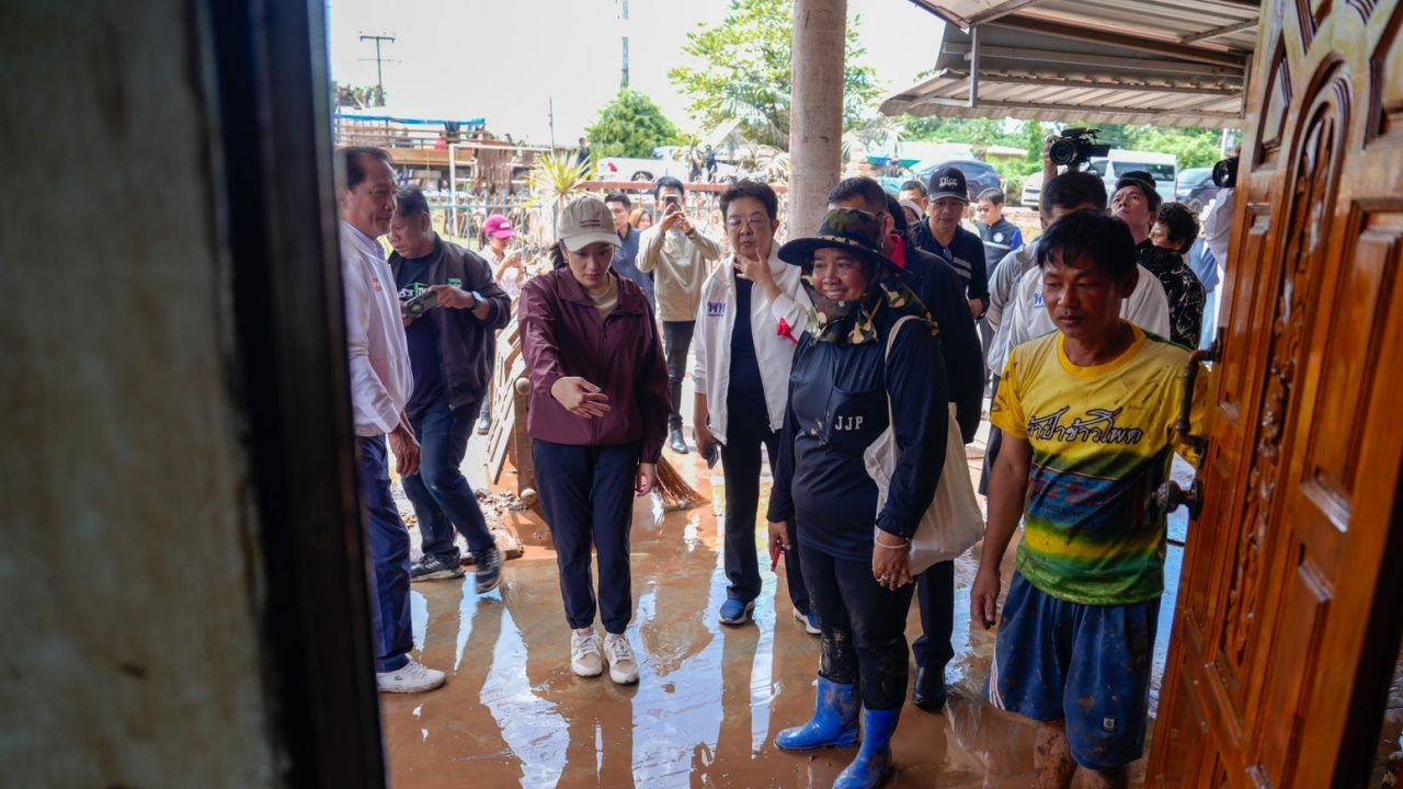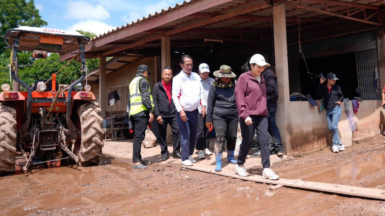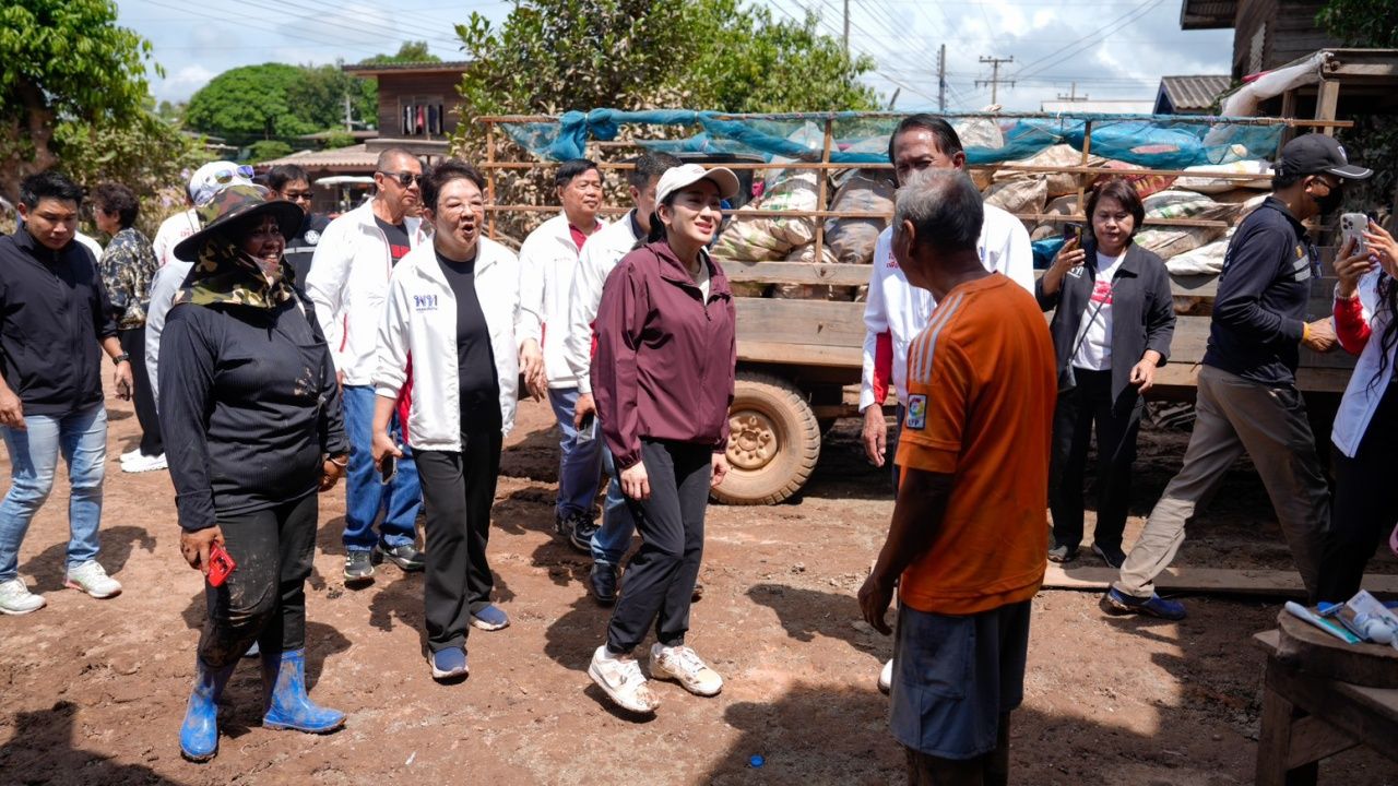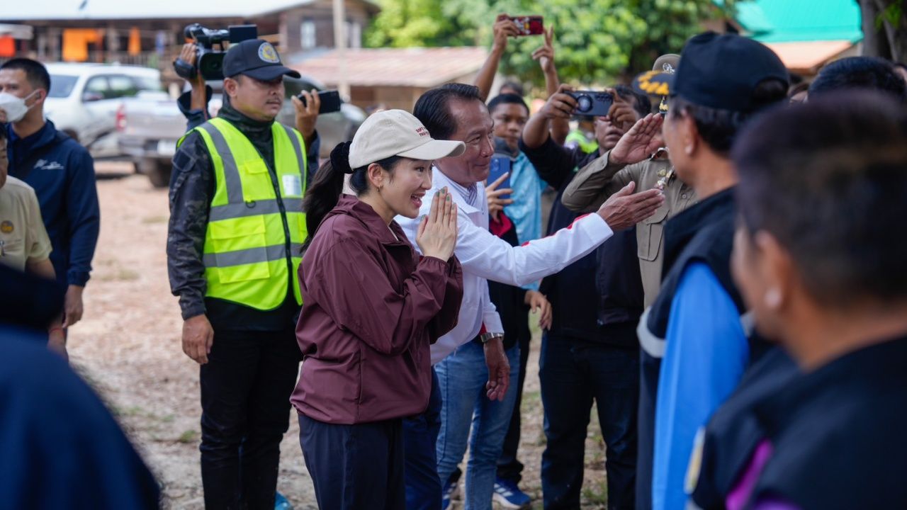 เมื่อเวลา 11.00 น. วันที่ 5 ต.ค. 2568 ที่ บ้านวังปรากฏ ต.ป่าคาย อ.ทองแสนขัน จ.อุตรดิตถ์ น.ส.แพทองธาร ชินวัตร หัวหน้าพรรคเพื่อไทย พร้อมด้วย นายสมศักดิ์ เทพสุทิน อดีตรมว.สาธารณสุข นายสรวงศ์ เทียนทอง เลขาธิการพรรคเพื่อไทย และบรรดา สส. อุตรดิตถ์ พิษณุโลก พรรคเพื่อไทย ลงพื้นที่ เพื่อตรวจสอบความเสียหายและผลกระทบจากสถานการณ์น้ำท่วม โดย น.ส.แพทองธาร ได้รับฟังการรายงานจากกำนันผู้ใหญ่บ้านว่าเป็นน้ำที่มาเร็วและไปเร็ว แม้จะได้รับการแจ้งเตือนแต่ก็ไม่ทันได้ตั้งตัว จากนั้นหัวหน้าพรรคได้เข้าไปเยี่ยมบ้านเรือนของชาวบ้าน ซึ่งต่างเล่าให้ฟังว่าน้ำท่วมมิดหลังคา เป็นการท่วมที่ไม่ทันและไม่ได้ตั้งตัวอะไรเลย จากนั้น (11.30 น.) คณะได้เดินทางต่อไปยังวัดคีรีวงกฎ ต.ป่าคาย อ.ทองแสนขัน จ.อุตรดิตถ์ เพื่อติดตามสถานการณ์น้ำท่วม ให้กำลังใจ และมอบถุงยังชีพให้แก่พี่น้องประชาชนที่ได้รับความเดือดร้อน โดยมีพี่น้องมารอต้อนรับร่วมร้อยคน