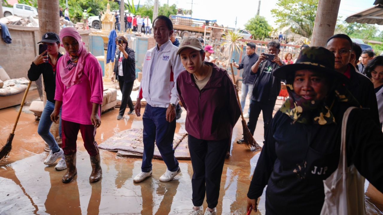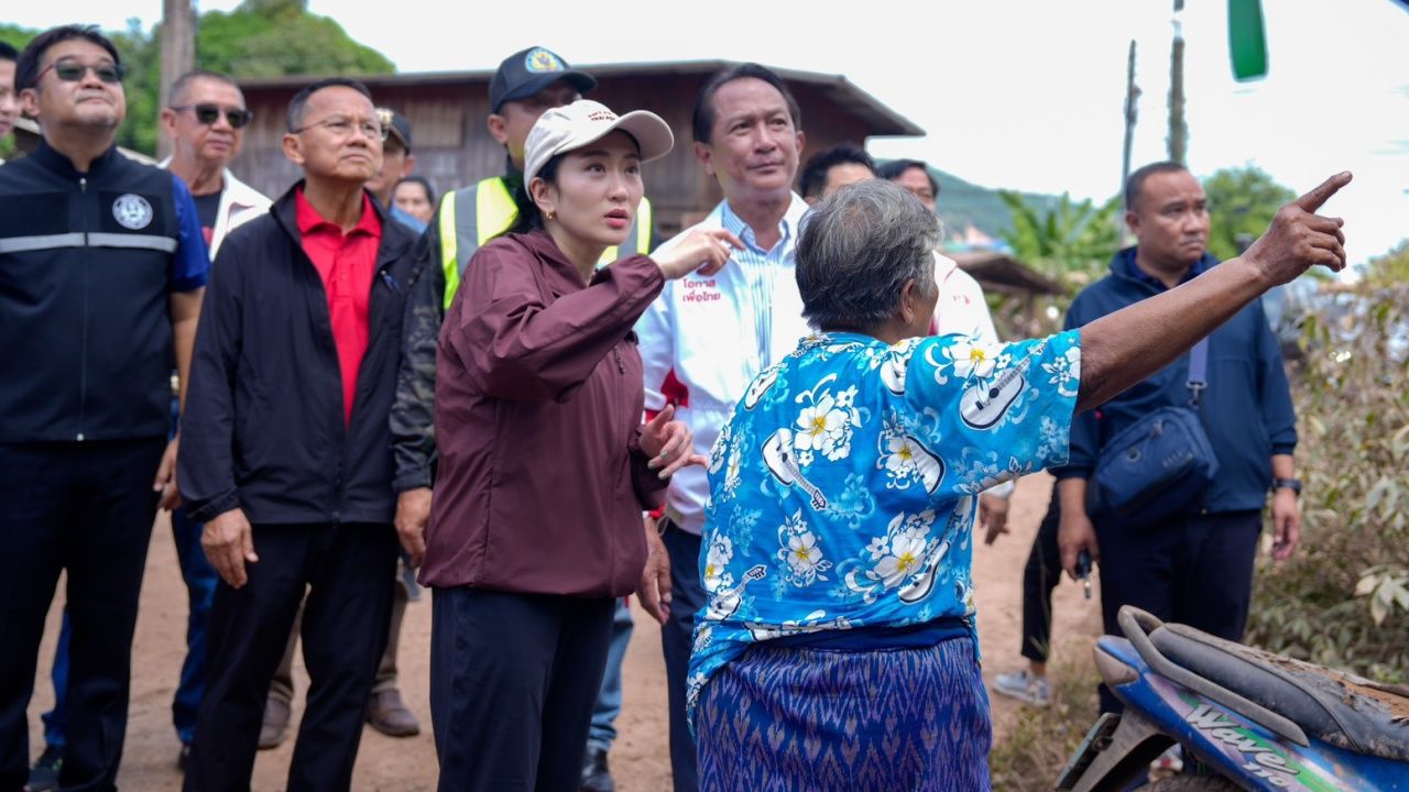 น.ส.แพทองธาร ได้กล่าวกับประชาชนตอนหนึ่งว่า ดีใจและเป็นเกียรติอย่างยิ่งที่ได้มาเจอพี่น้องประชาชน หลังจากพ้นจากตำแหน่งนายกฯ รู้สึกอบอุ่นเสมอทุกครั้งที่ได้มาลงพื้นที่ ซึ่งเป็นความรู้สึกที่ได้รับตั้งแต่ก่อนรับตำแหน่งนายกฯ ว่าการได้มาเจอพี่น้องทุกครั้งก็จะได้รับกำลังใจจากพี่น้องประชาชนทุกครั้งเลย เมื่อสักครู่ที่ได้ไปติดตามพื้นที่ ทุกคนพูดเป็นเสียงเดียวกันว่าหมดเลย ไม่เหลืออะไรเลย เห็นใจจริงๆ แต่ถึงไม่เหลืออะไร ยังเหลือกำลังใจเหลือกันและกันที่จะคอยช่วยเหลือ และตนจะคอยช่วยเหลือผ่าน สส. เพื่อให้เร่งเรื่องการช่วยเหลือ ทั้งการสนับสนุนเยียวยาให้ได้โดยเร็ว และจะเป็นอีกแรงหนึ่งที่จะช่วยผลักดันผ่าน สส. ทุกคนขอให้ทุกท่านมีสุขภาพกายแข็งแรง และสุขภาพใจก็ให้แข็งแรงด้วยนะคะ ช่วงนี้อาจจะหนักหน่อยแต่ก็ขอให้กำลังใจทุกๆ ท่าน