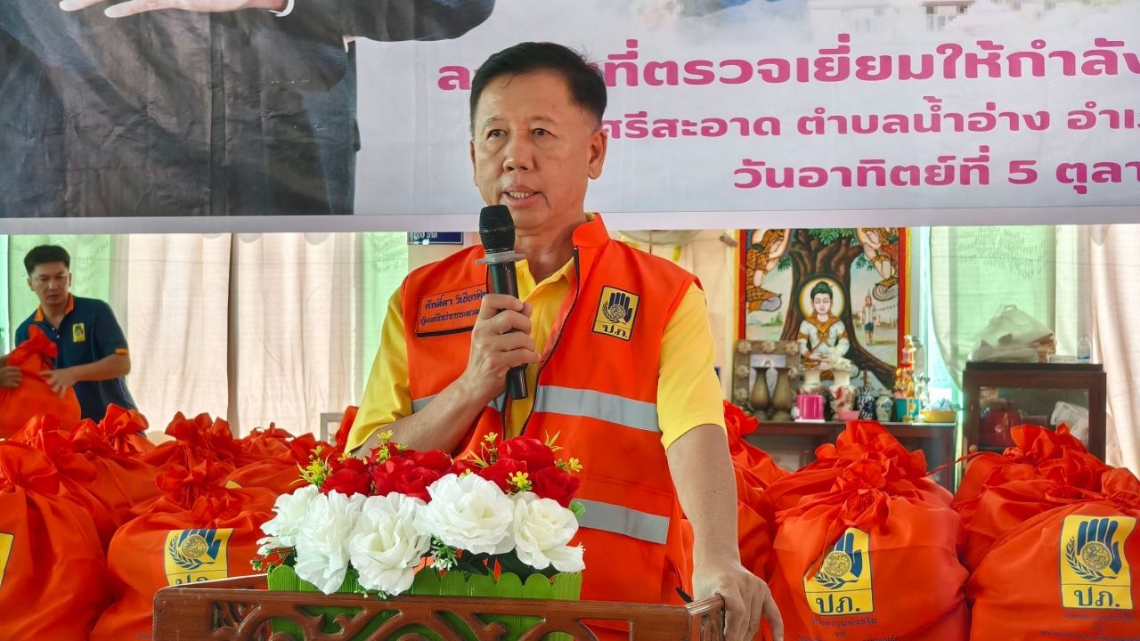 จากนั้น นายศักดิ์ดา นำคณะ มอบเครื่องอุปโภค บริโภค จำนวน 500 ชุด ให้กับประชาชนในพื้นที่ พร้อมทั้งเดินเท้าเข้าไปยังหมู่บ้านเพื่อมอบถุงยังชีพและพูดคุยให้กำลังใจประชาชนที่ได้รับผลกระทบจากสถานการณ์อุทกภัย และมอบถุงยังชีพ ซึ่งเป็นการบรรเทาความเดือดร้อนในเบื้องต้น