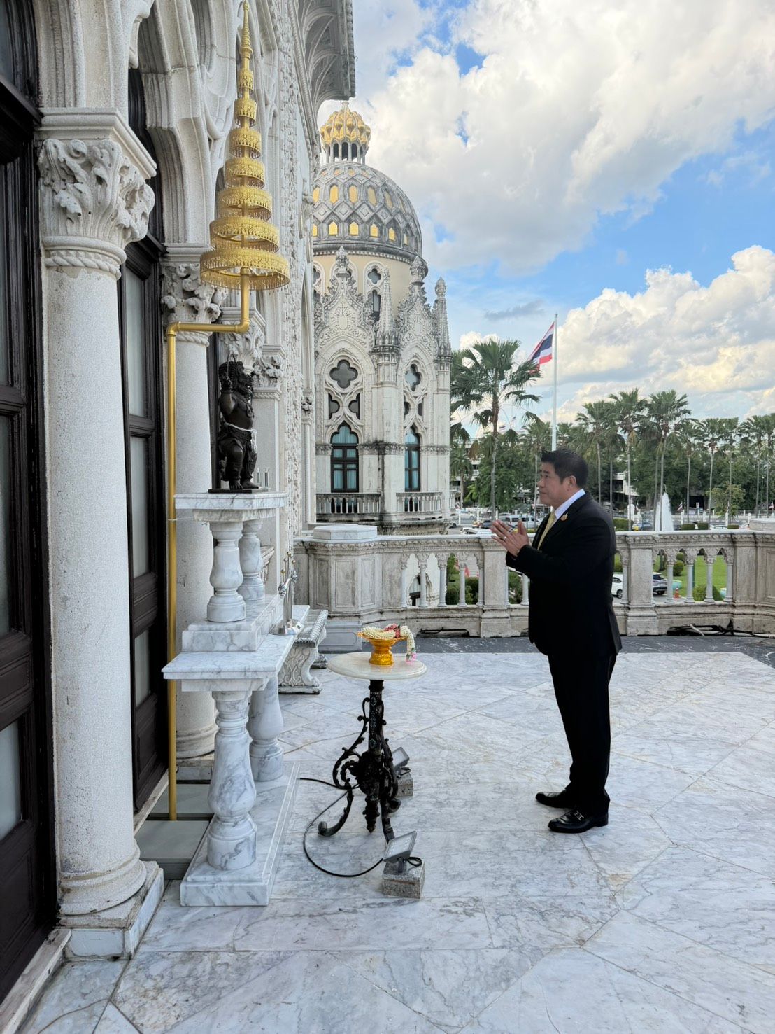 เมื่อเวลา 16.15 น. วันที่ 6 ตุลาคม 2568 ภายหลังการประชุมคณะกรรมการอำนวยการและบริหารสถานการณ์ภัยพิบัติทางธรรมชาติ (คอภ.) ครั้งที่ 1/2568 นายอนุทิน ชาญวีรกูล นายกรัฐมนตรีและรัฐมนตรีว่าการกระทรวงมหาดไทย ได้พา ร้อยเอกธรรมนัส พรหมเผ่า รองนายกรัฐมนตรีและรัฐมนตรีว่าการกระทรวงเกษตรและสหกรณ์ ขึ้นไปไหว้รูปปั้นองค์นรสิงห์ (จำลอง) ที่บริเวณระเบียงด้านหน้าตึกไทยคู่ฟ้า