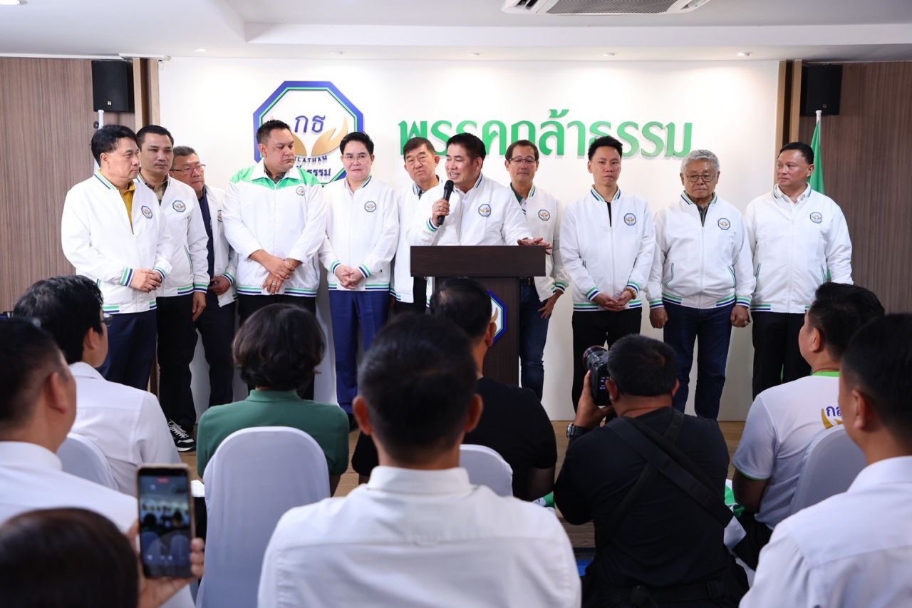 เมื่อเวลา 14.00 น. วันที่ 7 ตุลาคม 2568 ร.อ.ธรรมนัส พรหมเผ่า รองนายกรัฐมนตรีและรัฐมนตรีว่าการกระทรวงเกษตรและสหกรณ์ ในฐานะประธานที่ปรึกษาพรรคกล้าธรรม พร้อมด้วย น.อ.อนุดิษฐ์ นาครทรรพ ประธานยุทธศาสตร์พรรคกล้าธรรม และนายหิมาลัย ผิวพรรณ สมาชิกพรรค แถลงเปิดตัวพร้อมสวมเสื้อแจ็กเก็ตพรรคให้กับว่าที่ผู้สมัครสมาชิกสภาผู้แทนราษฎร (สส.) พรรคกล้าธรรม จำนวน 15 คน