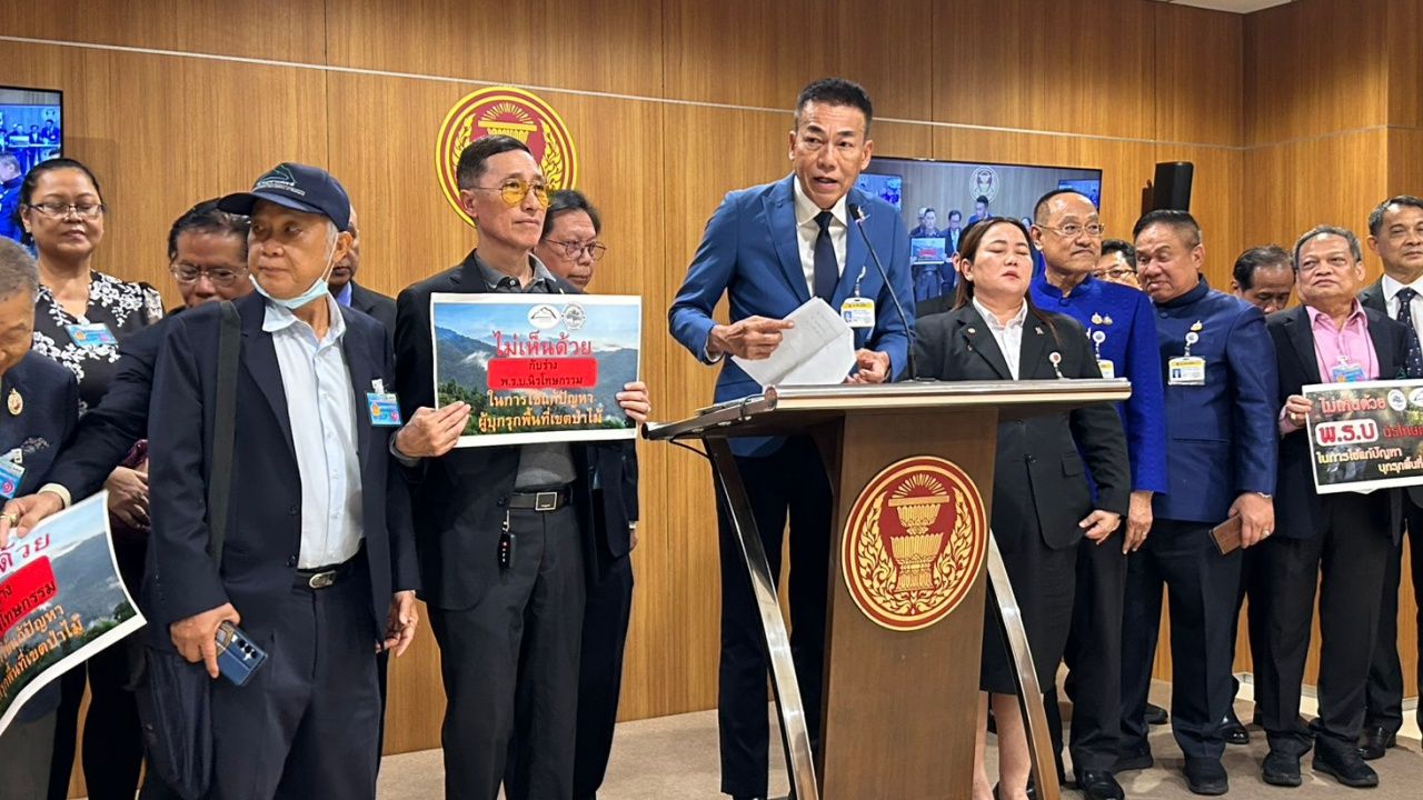 “ผมรู้ว่าใครได้อานิสงส์บ้าง มี สส.ในสภาแห่งนี้อีกเป็นสิบๆ คนที่โดนคดีแบบนี้ ไปดูสิว่ามันพรรคไหนบ้าง มีอดีตรัฐมนตรีกี่คนที่จะได้กลับมาผงาด จะเอากันแบบนั้นหรือ มันไม่ใช่ และที่สำคัญผมบอกเลยว่าที่ดินเป็นล้านๆ ไร่ คนเขียนกฎหมายรู้บ้างหรือไม่ ว่าเขาเอาไปฟื้นฟู ปลูกป่า เขาเอาไปทำเป็นสวนป่า เป็นป่าชุมชนก็มี เอาไปทำโครงการพระราชดำริ และโครงการพัฒนาแหล่งน้ำ ใช้เงินไปเป็นแสนๆ ล้านบาทแล้ว แล้วจะให้เขากลับเข้าพื้นที่ บางคนได้กลับเข้าไปก็แฮปปี้เลย เพราะมีอ่างเก็บน้ำเป็นของตัวเองแล้ว และรัฐปลูกป่าไว้ให้หมดแล้วเป็นล้านๆ ไร่ในคดีที่ถูกยึดไป”