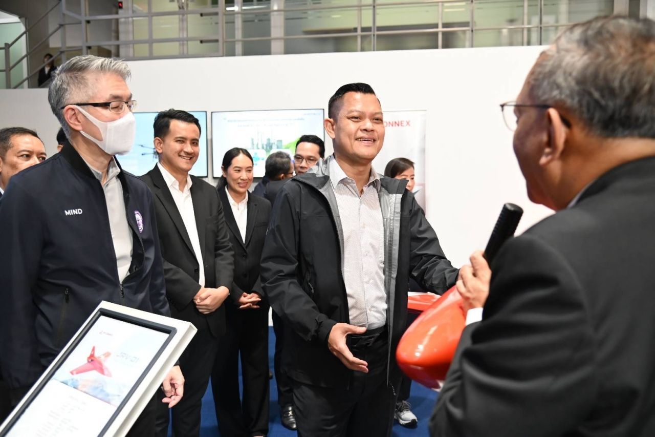 วันที่ 12 ตุลาคม 2568 นายธนกร วังบุญคงชนะ รัฐมนตรีว่าการกระทรวงอุตสาหกรรม พร้อมผู้บริหารกระทรวงอุตสาหกรรม เข้าเยี่ยมชมศูนย์วิจัยพัฒนาเทคโนโลยีและนวัตกรรมขั้นสูง (Deep Tech Innovation Center) ประกอบด้วย ศูนย์ปฏิบัติการเฝ้าระวังความปลอดภัยไซเบอร์ (CSOC) สำหรับปกป้องระบบดิจิทัลและข้อมูลที่สำคัญ สถานที่ผลิตวัสดุคอมโพสิตและชิ้นส่วนโลหะ สายการผลิต SMT สำหรับประกอบแผงวงจรและอุปกรณ์อิเล็กทรอนิกส์ความแม่นยำสูง และห้องประกอบและทดสอบชิ้นส่วนดาวเทียม System Integration Lab (SIL) เพื่อบูรณาการระบบขั้นสูง รวมถึงการพัฒนาซอฟต์แวร์ระบบปฏิบัติการ พร้อมทั้งรับฟังการนำเสนอความร่วมมือกับหน่วยงานศูนย์ทหารปืนใหญ่ เช่น การพัฒนาระบบ Autopilot, ระบบ Fuel Cell สำหรับโดรนพลังงานสะอาด และการพัฒนาระบบเชื่อมโยงข้อมูลทางยุทธวิธีสำหรับเครื่องบินโจมตี ที่บริษัท อาร์วี คอนเน็กซ์ จำกัด (RV Connex) จ.ปทุมธานี
